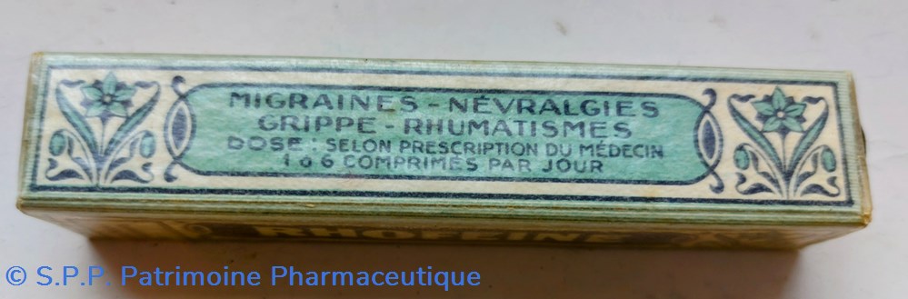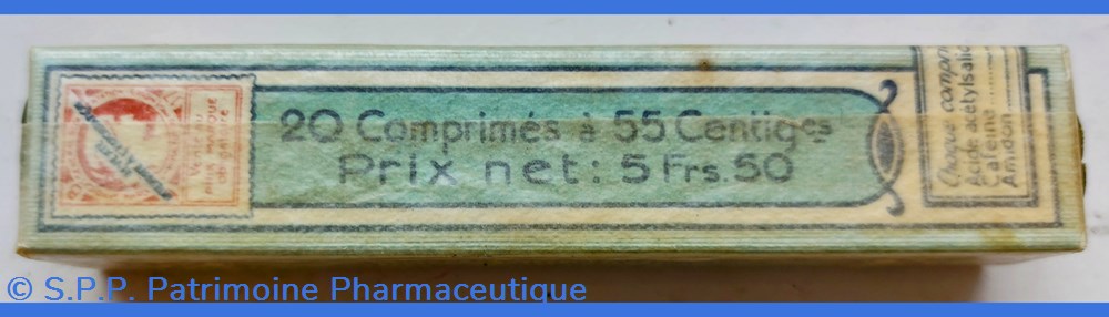 Tube sous boîte carton recouverte de papier cellophane d'origine. 20 comprimés 55 cg( acide acetylsalicylique caféine et amidon)