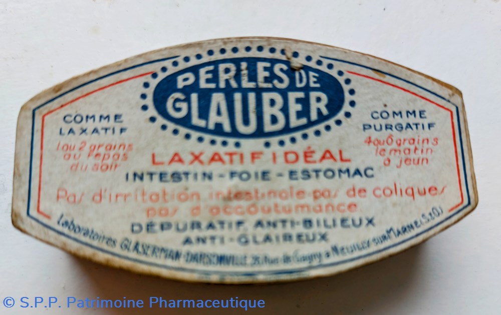 Boîte ovale scellée contenant des perles de GLAUBER. Laxatif idéal intestin foie estomac