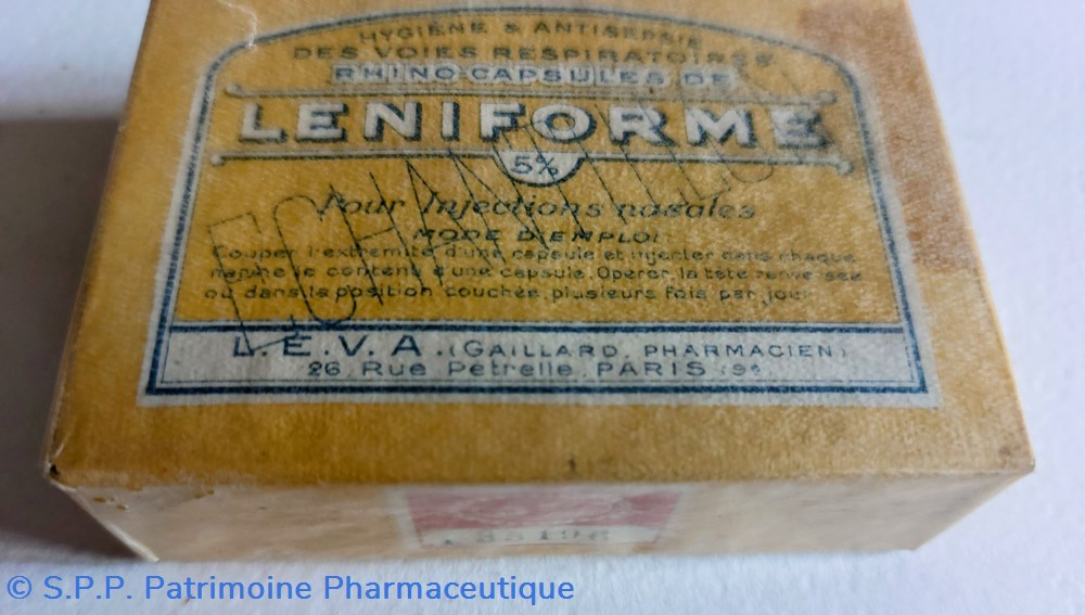 Boite carton scellée avec papier transparent contenant des rhino-capsules de LENIFORME 5% pour injections nasales