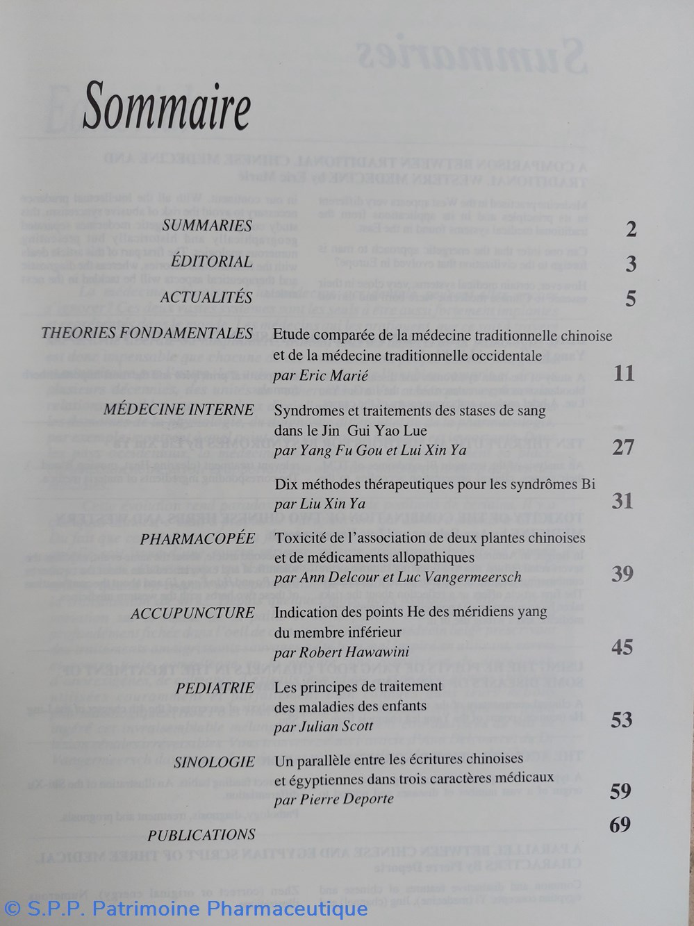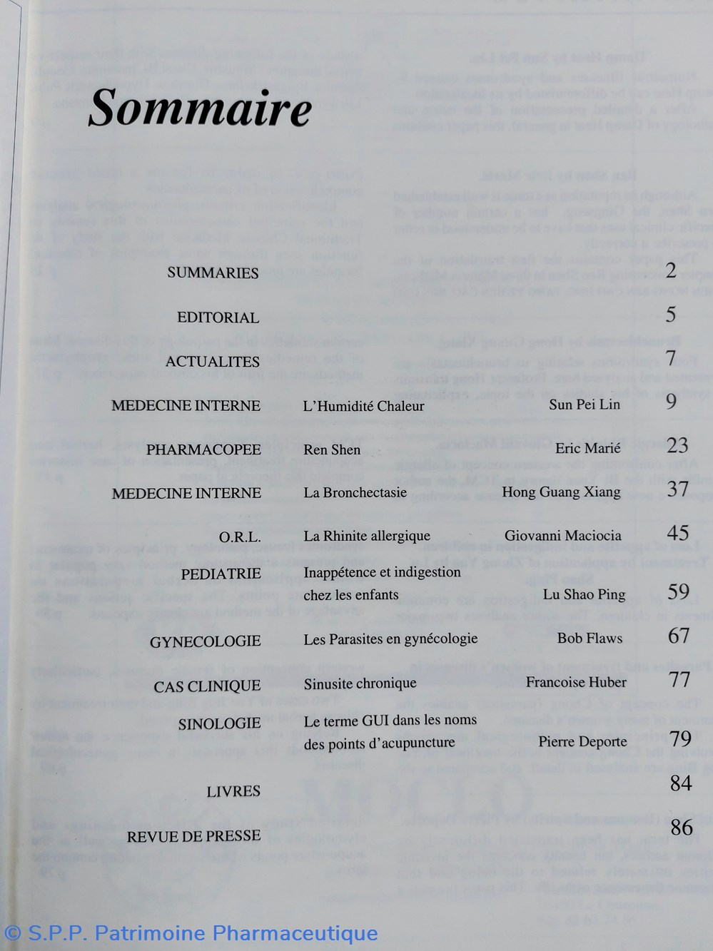 Les articles relèvent de différents domaines : Médecine interne, Pharmacopée, O.R.L., Pédiatrie, Gynécologie, Cas clinique, Sinologie, acupuncture,...