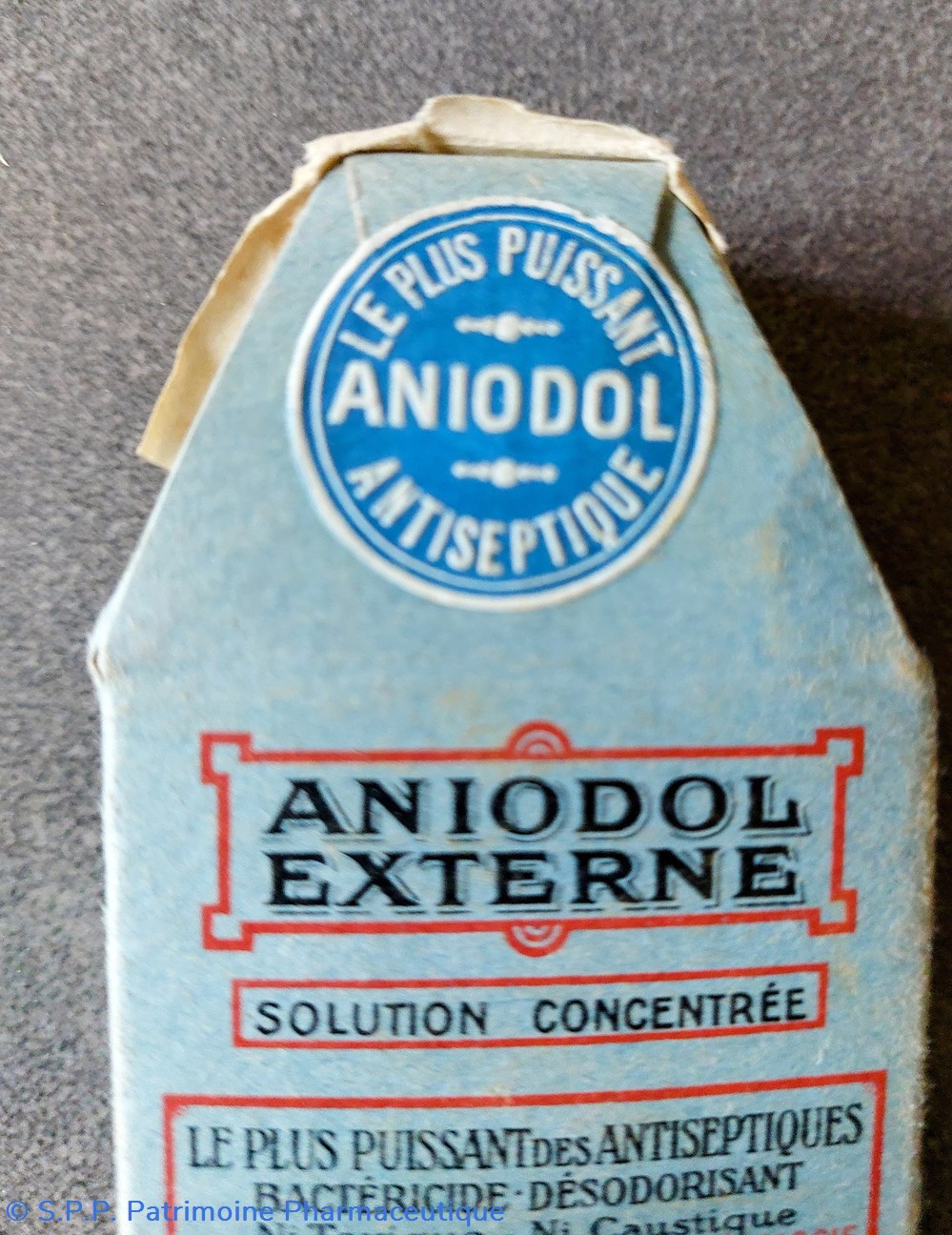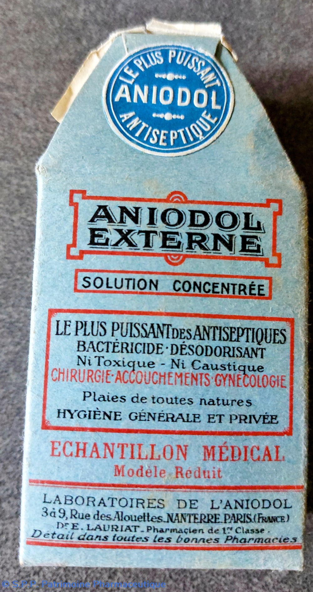 Boîte carton scellée contenant un liquide échantillon médical - solution concentrée - " Le plus puissant des antiseptiques bactéricide désodorisant pour chirurgie gynécologique et plaies de toutes natures"