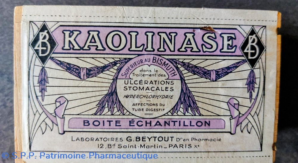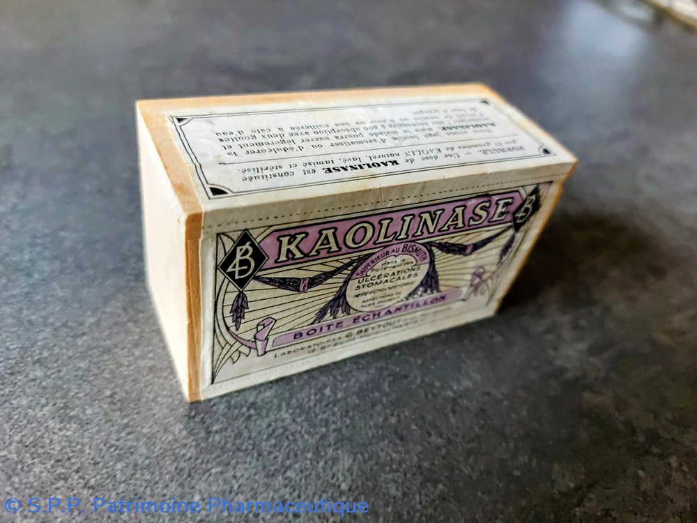 Boîte échantillon en bois blanc scellée contenant KAOLINASE supérieur au BISMUTH - # Traitement des ulcérations stomacales.