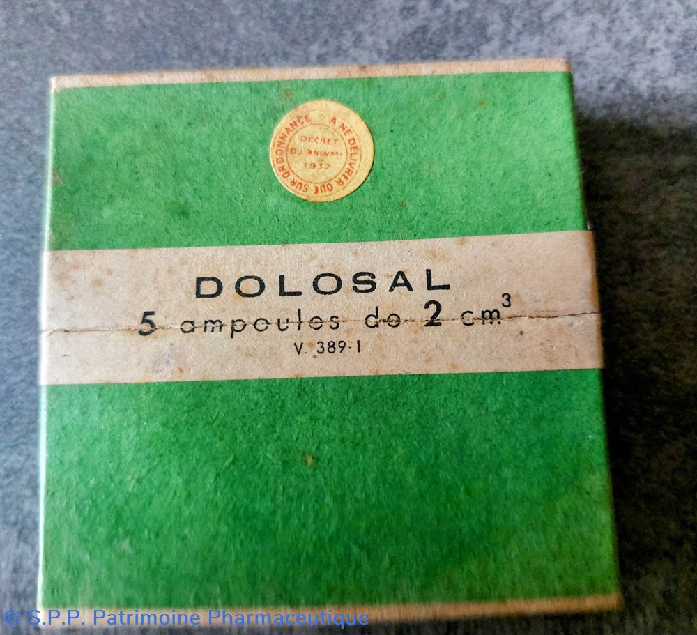 Boîte carton contenant 5 ampoules de liquide DOLOSAL