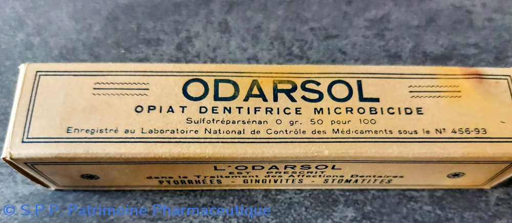 Boîte carton scellée contenant un tube ODARSOL "Opiat dentifrice microbicide"