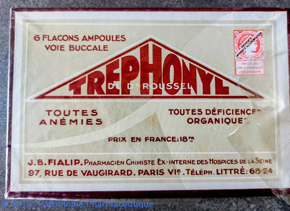 Boîte carton sous cellophane contenant TREPHONYL du Dr ROUSSEL J. B. FIALIP Paris