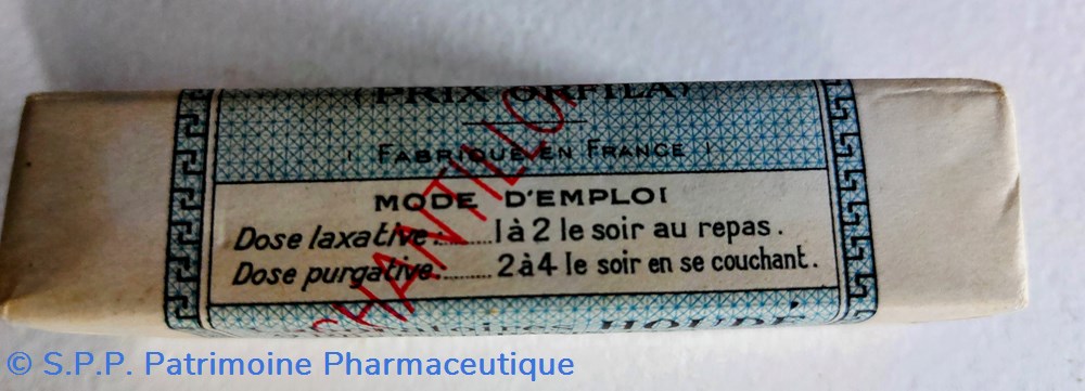 Boîte carton scellée contenant 50 granules à utiliser en dose laxative ou purgative.