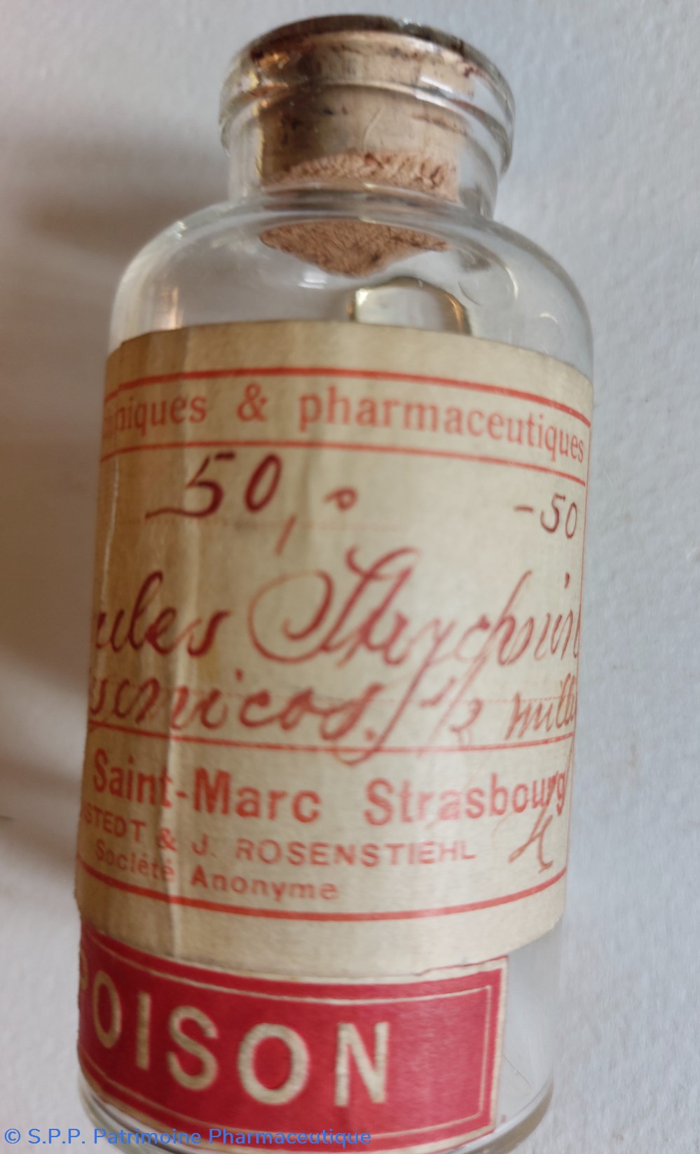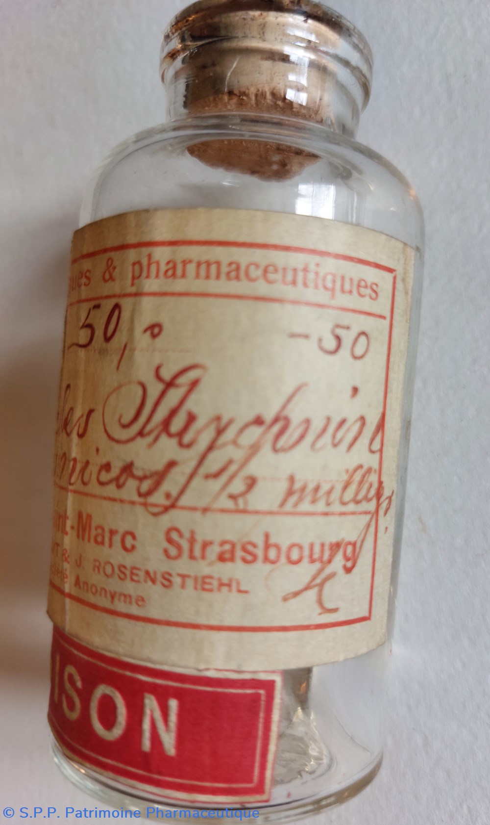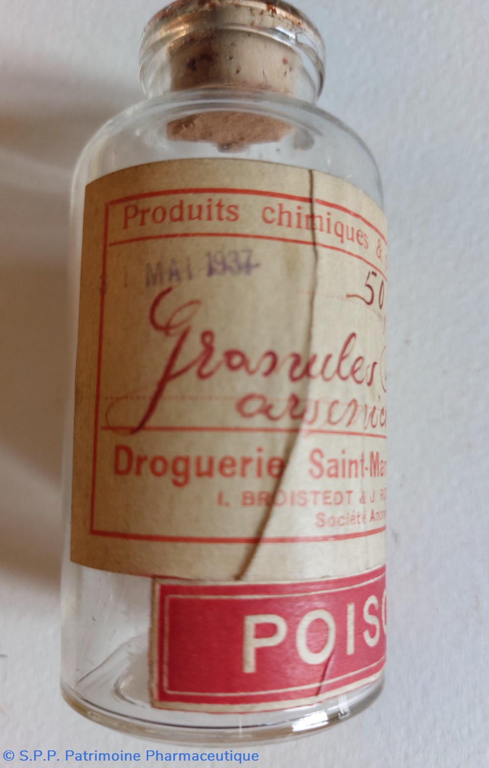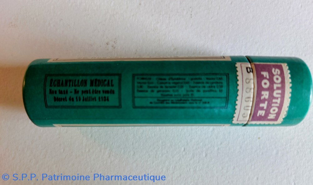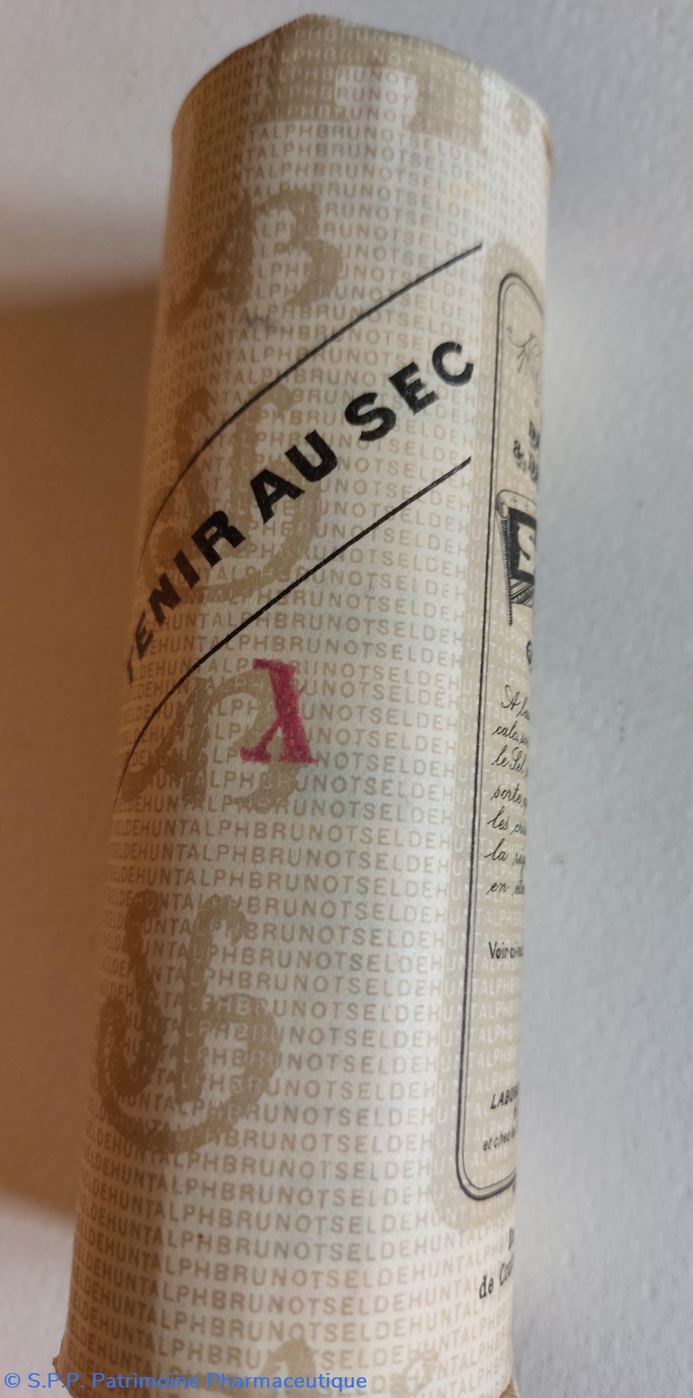 Flacon contenant du 'liquide marron scellé avec une Pastille "Spécifique Bejean"