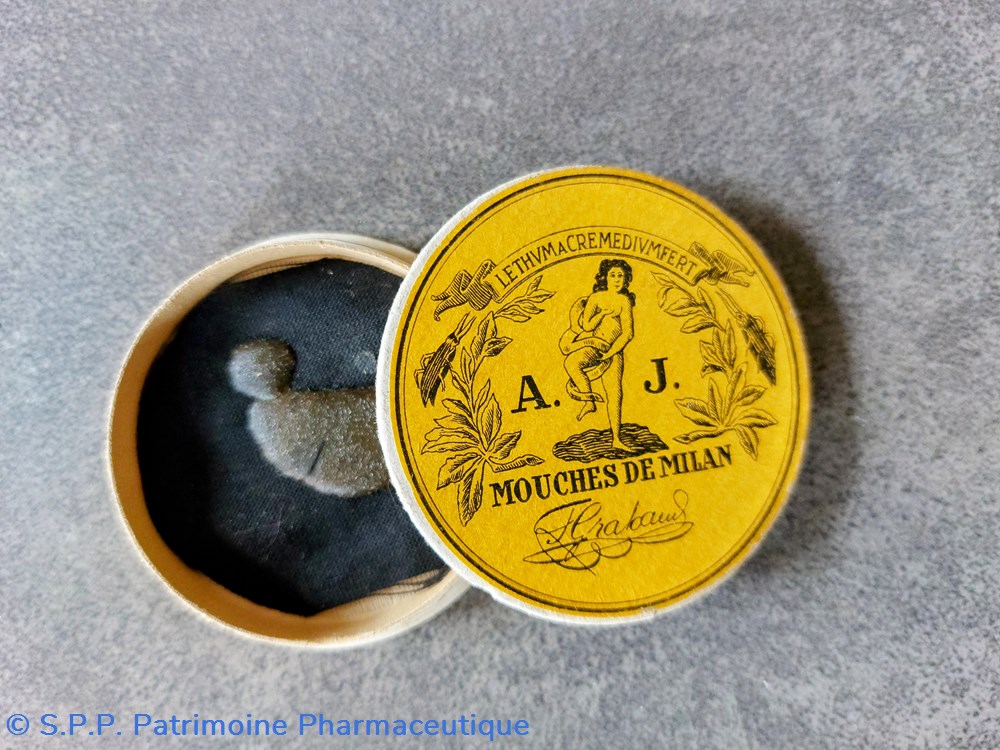 Selon Wikipedia " La cantharidine est employée en pharmacopée comme emplatre vésicant."...??? 12 À base de poix noire purifiée ???