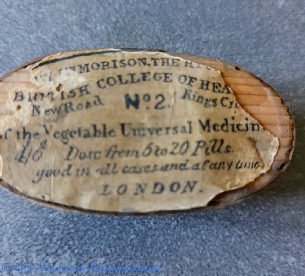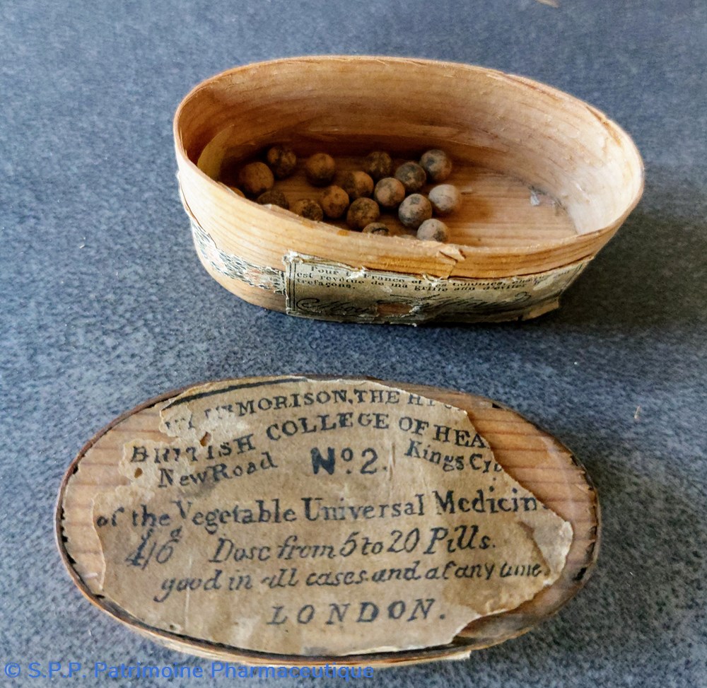 MORISON est connu pour ses pilules vendues avec son appellation " The Vegetable Universal Medecines" ( que l'on peut traduire : Le médicament végétal universel). Destiné pour toutes sortes de maladies et dont il gardait secrète la composition.