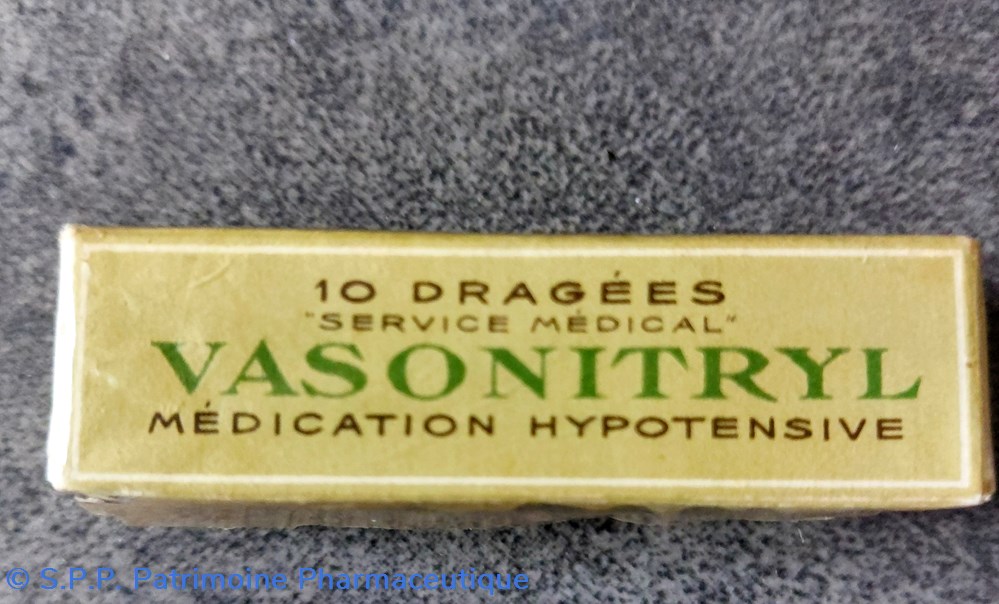 Boîte sous cellophane longue de 6 cm contenant 10 dragées "Médication hypotensive"