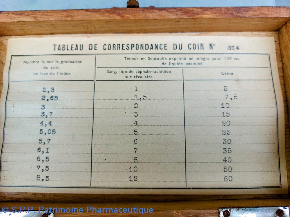 Coffret avec fermoir 19*11,5 hauteur 9,5 cm. Contenant notice d'utilisation et "tableau de correspondance du coin N 314"