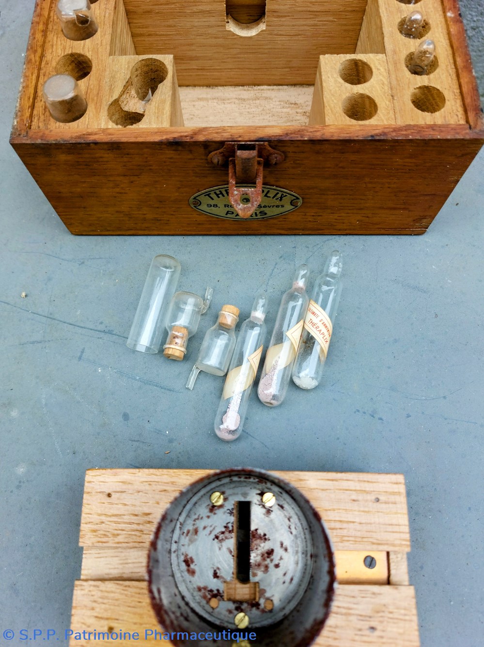 Petite mallette en bois contenant tubes à essais et réactifs IV 0,05 THERAPLIX (poudre)