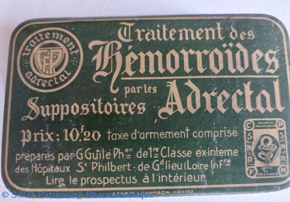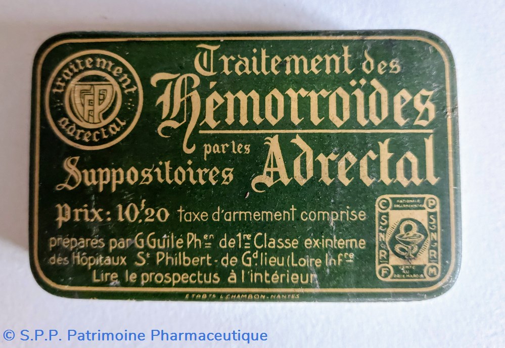 Boîte métallique 9, 5 * 6 cm ayant contenu des suppositoires ADRECTAL pour traitement des hémorroïdes