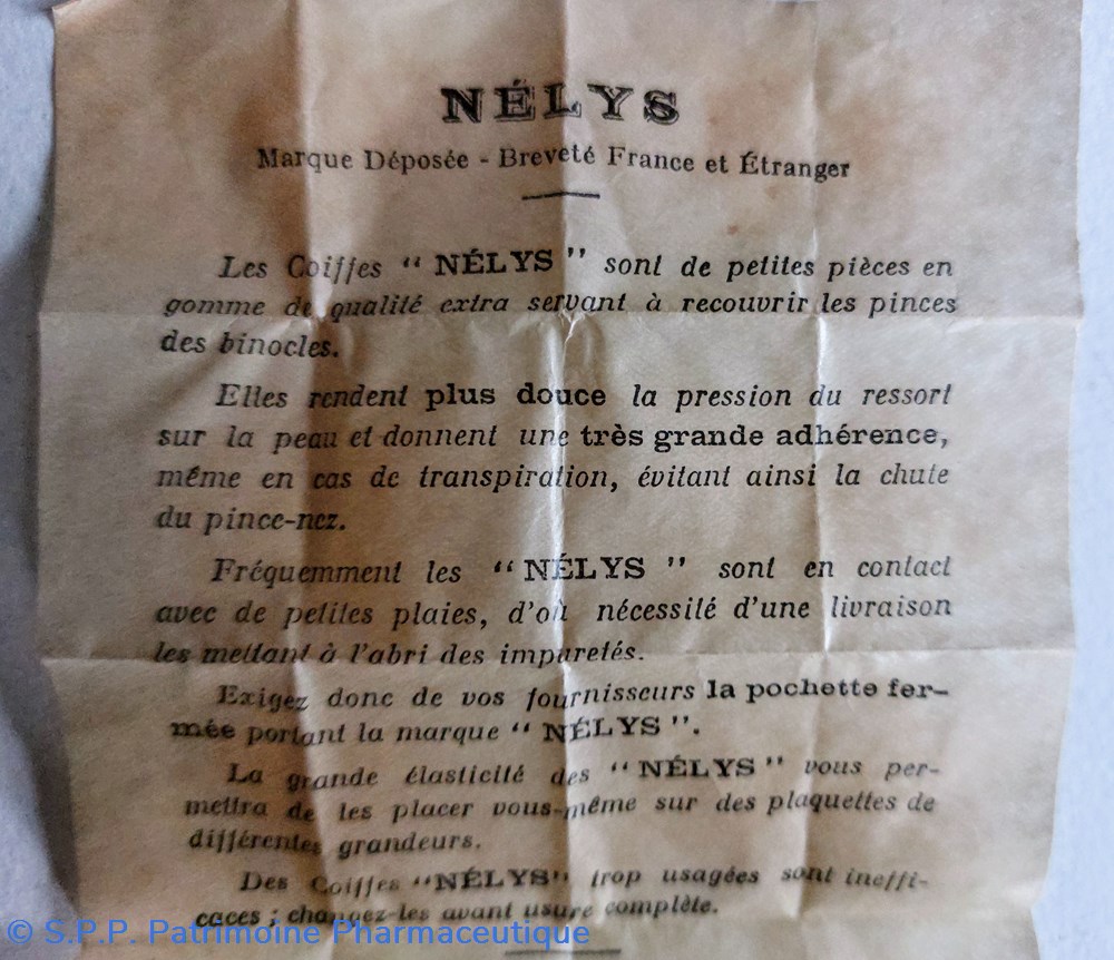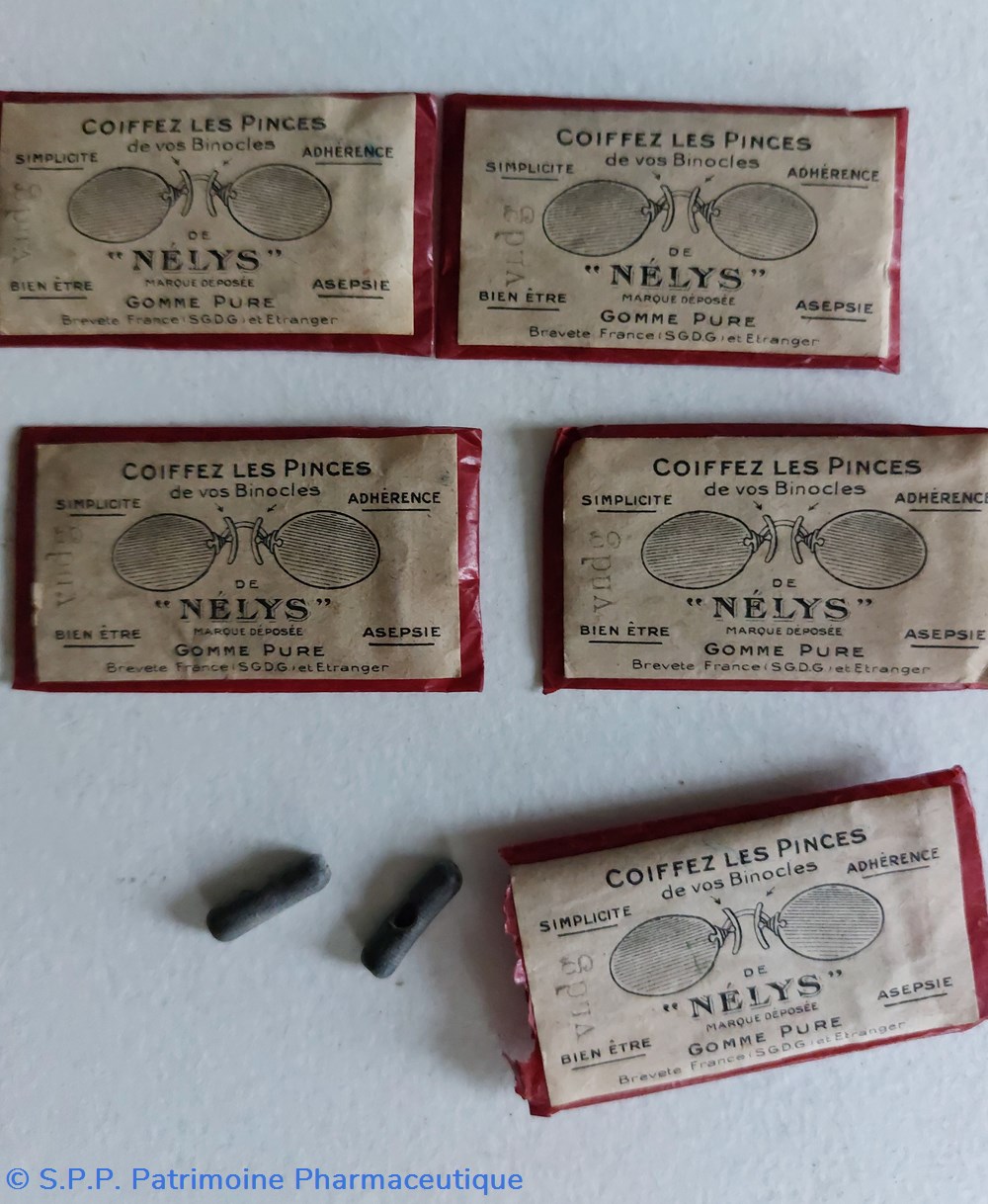 Sachets contenant des patins en gomme servant à recouvrir les pinces de binocles.