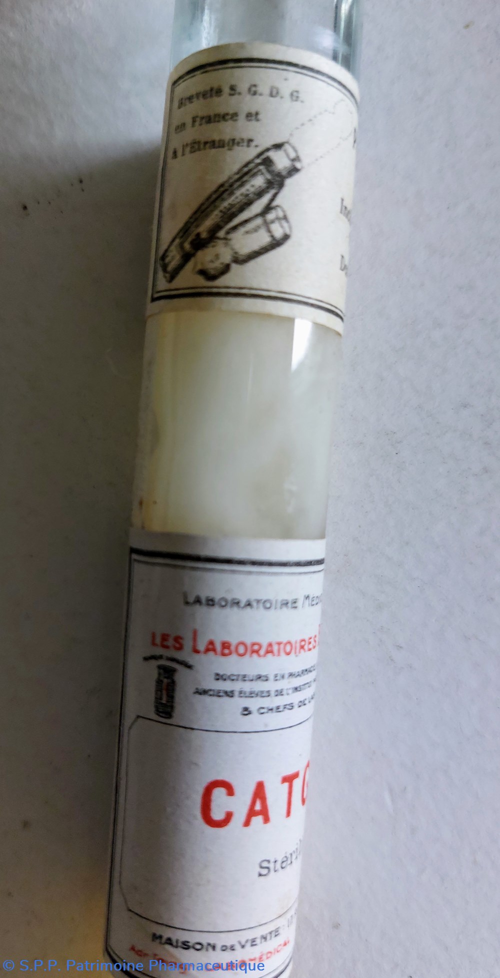 Cylindre carton protégeant une ampoule longueur 19 cm contenant du fil de suture