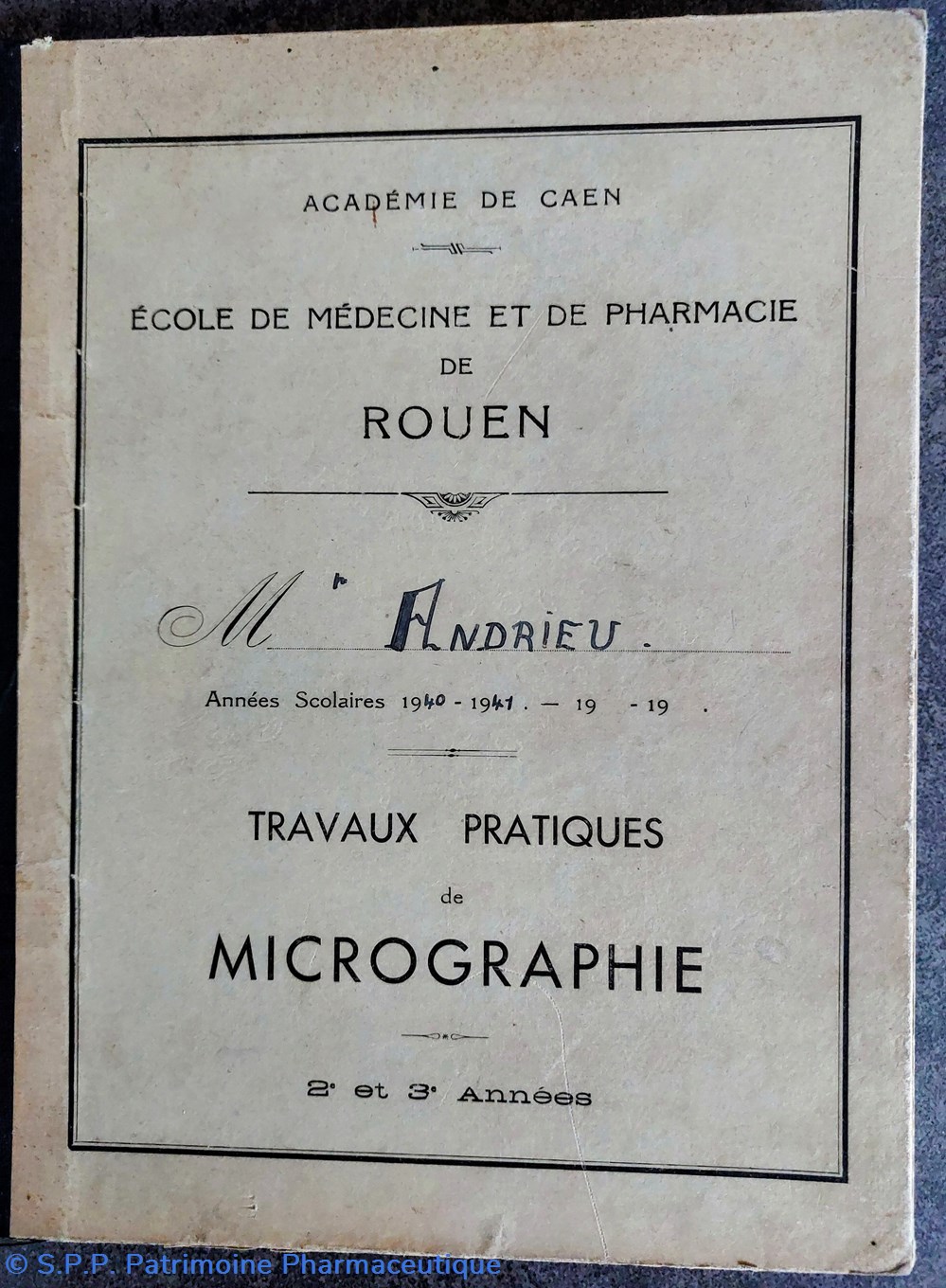 Cahier d'étudiant T. P. de micrographie 1940-41