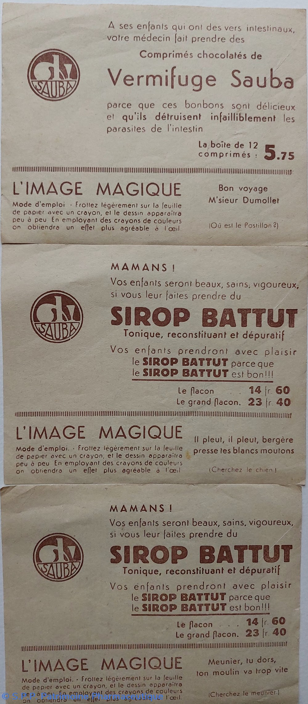 Au verso différents produits de la marque SAUBA