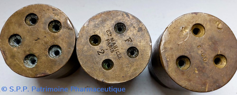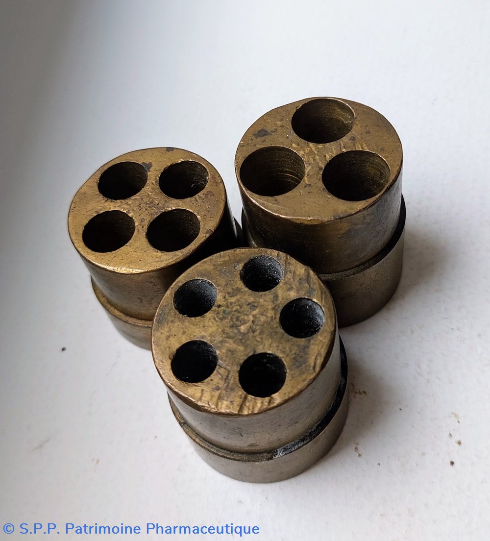 - Moule 4 suppositoires de 1 cm de diamètre / Hauteur 3.5 cm Diamètre 3.5- 4 cm ---Marqué " F2 Ets MABILLE à Paris"