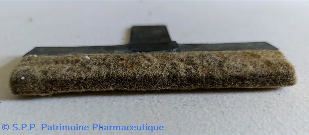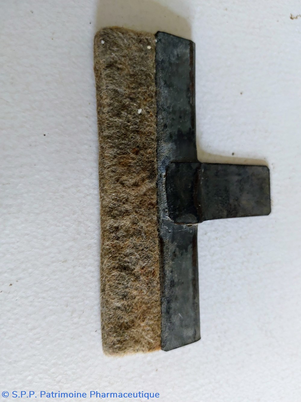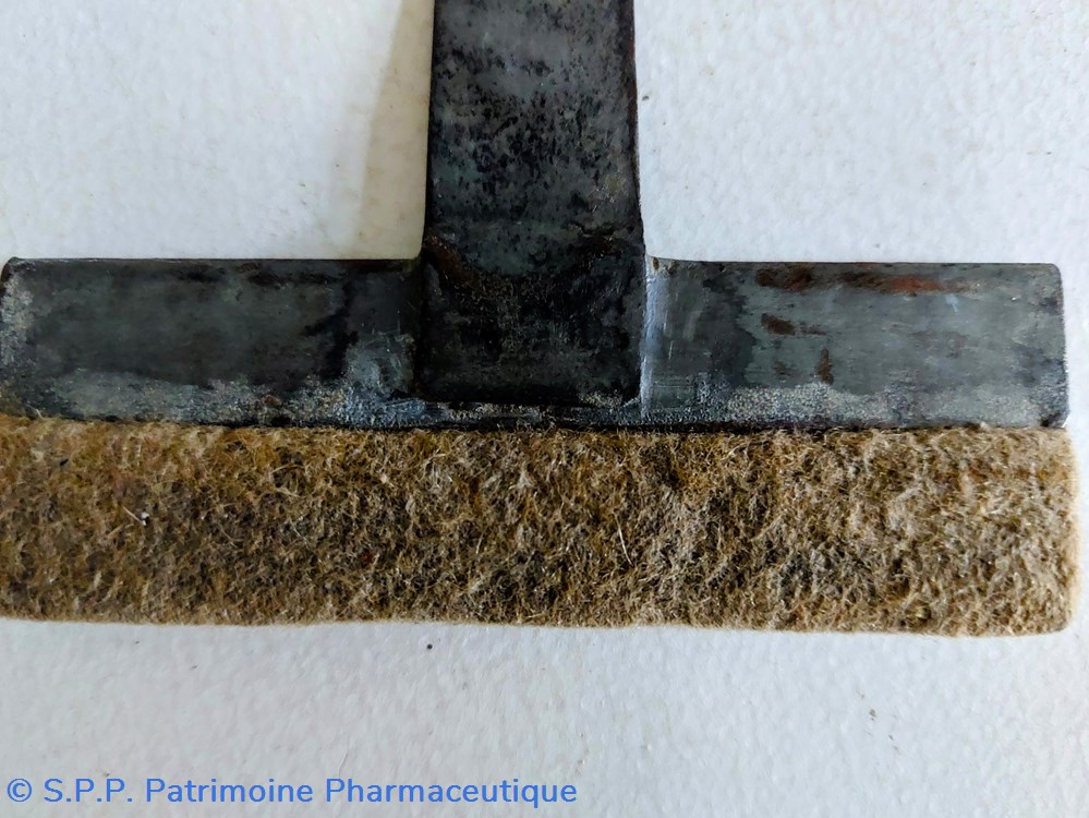 Raclette de fabrication artisanale provenant d'une pharmacie.