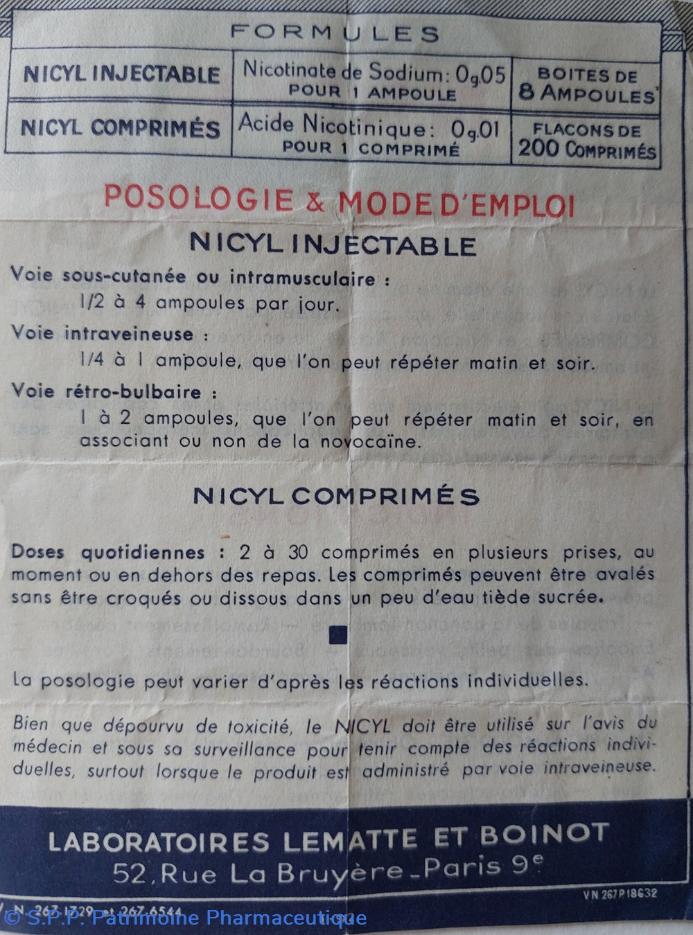 Laboratoires LEMATTE et BOINOT à Paris.