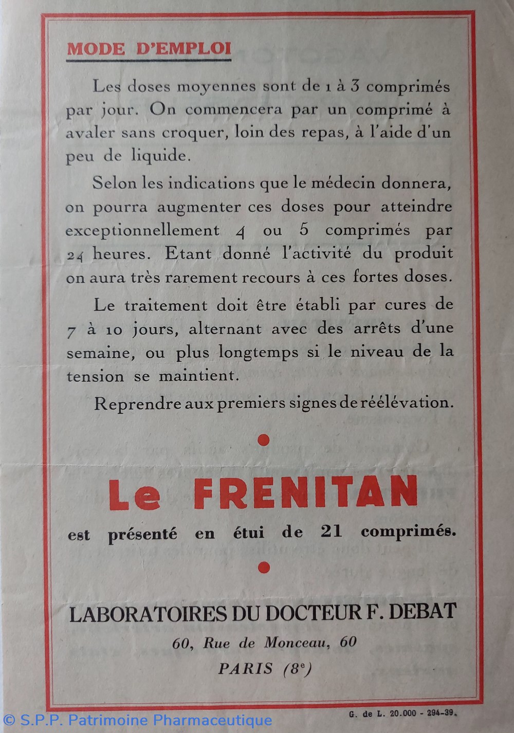Laboratoires du Docteur de F. DEBAT à Paris