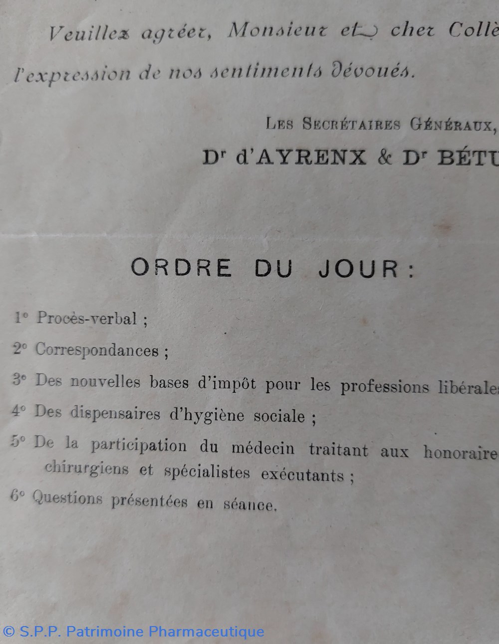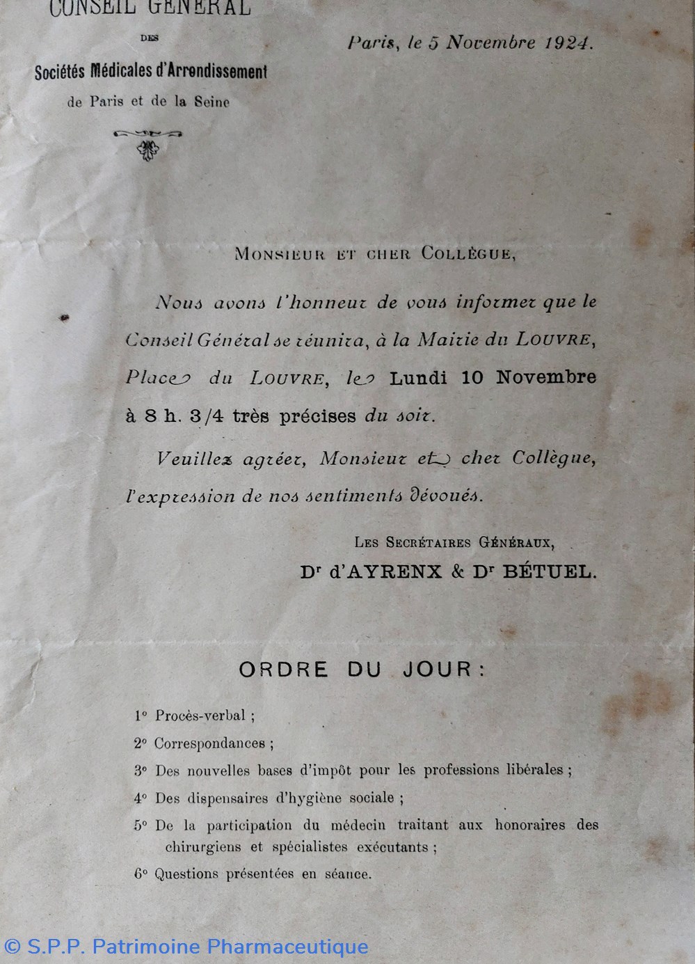 Convocation Conseil Général des Sies Médicales 5 nov, 1924