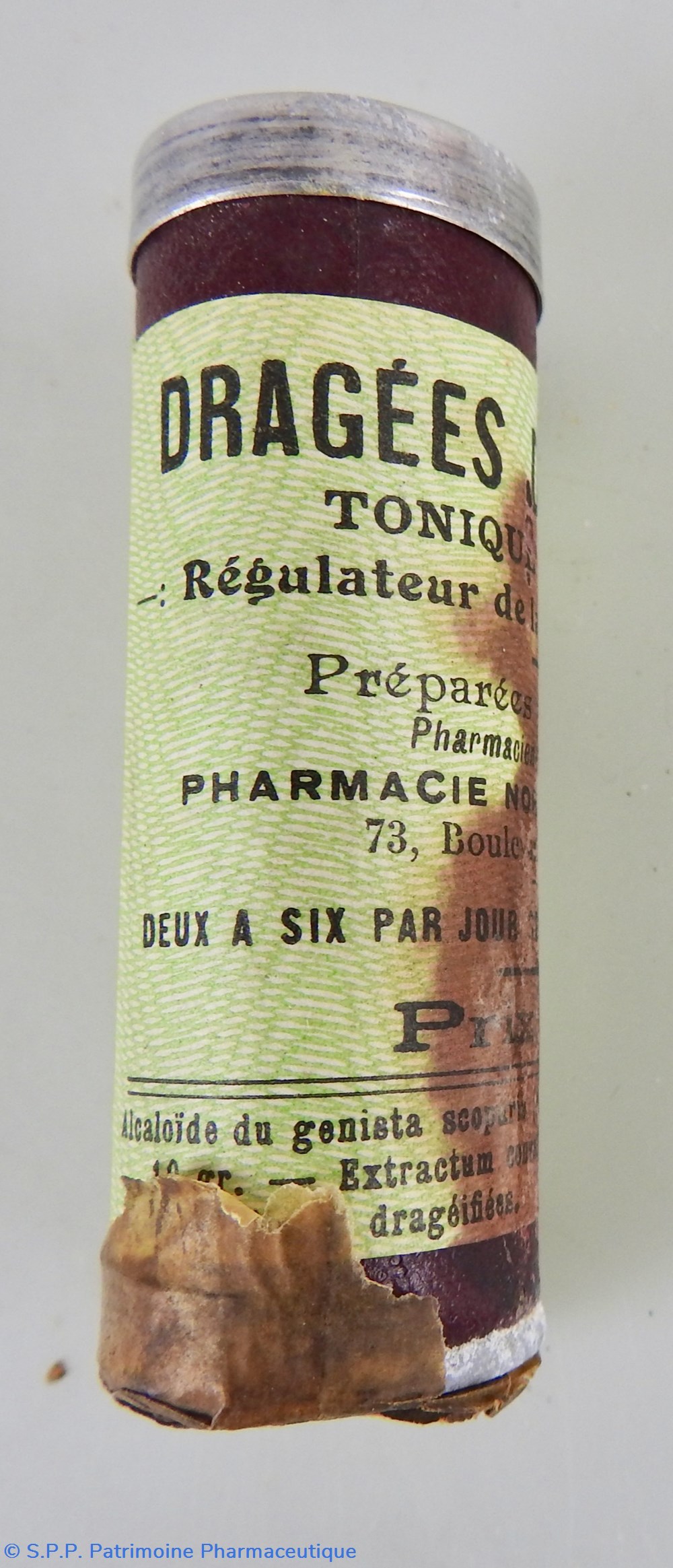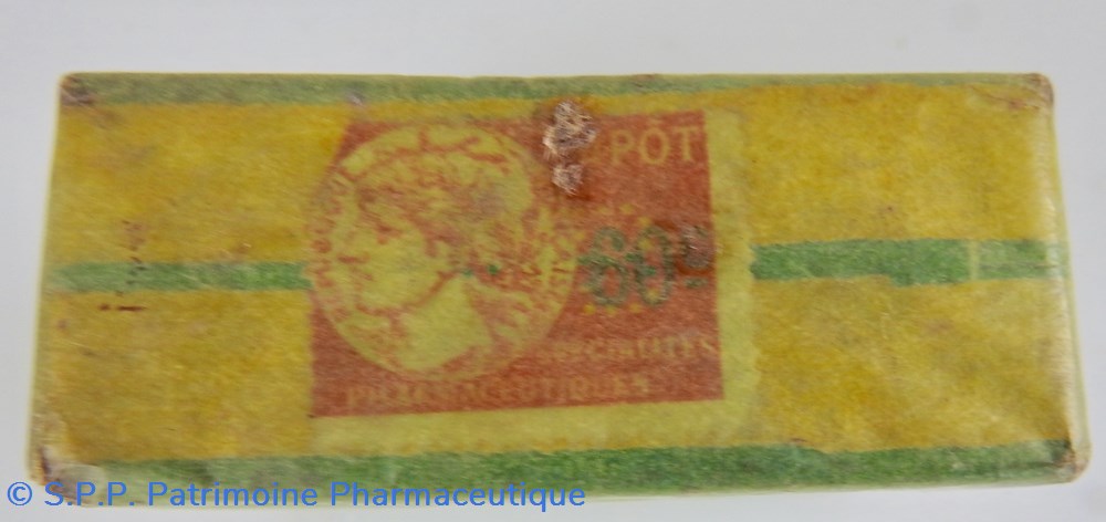 Boite de 30 pillules Prix de la boite 8 Frs Etiquette Impot 95 centimes.
