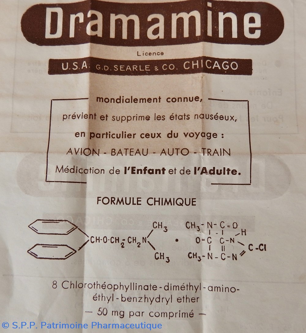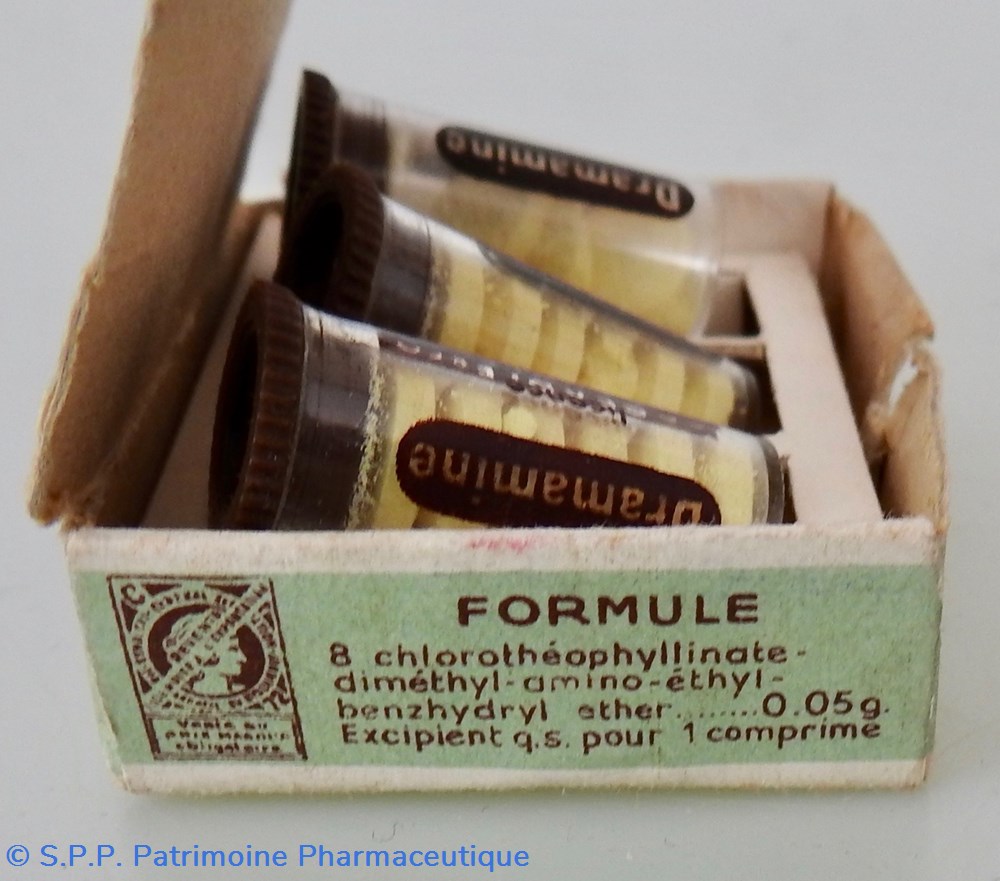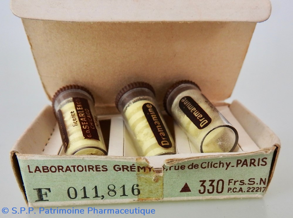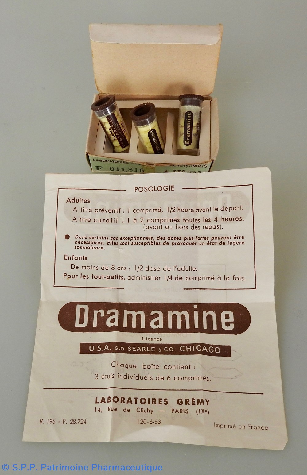 Dramamine : 18 comprimés à 50 mg en 3 tubes " contre les maux de voyage"