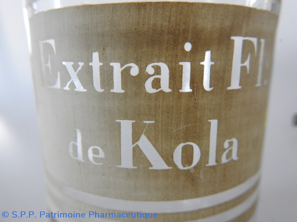 Etiquette blanche imprimée mentionnant " Extrait FL : de Kola "