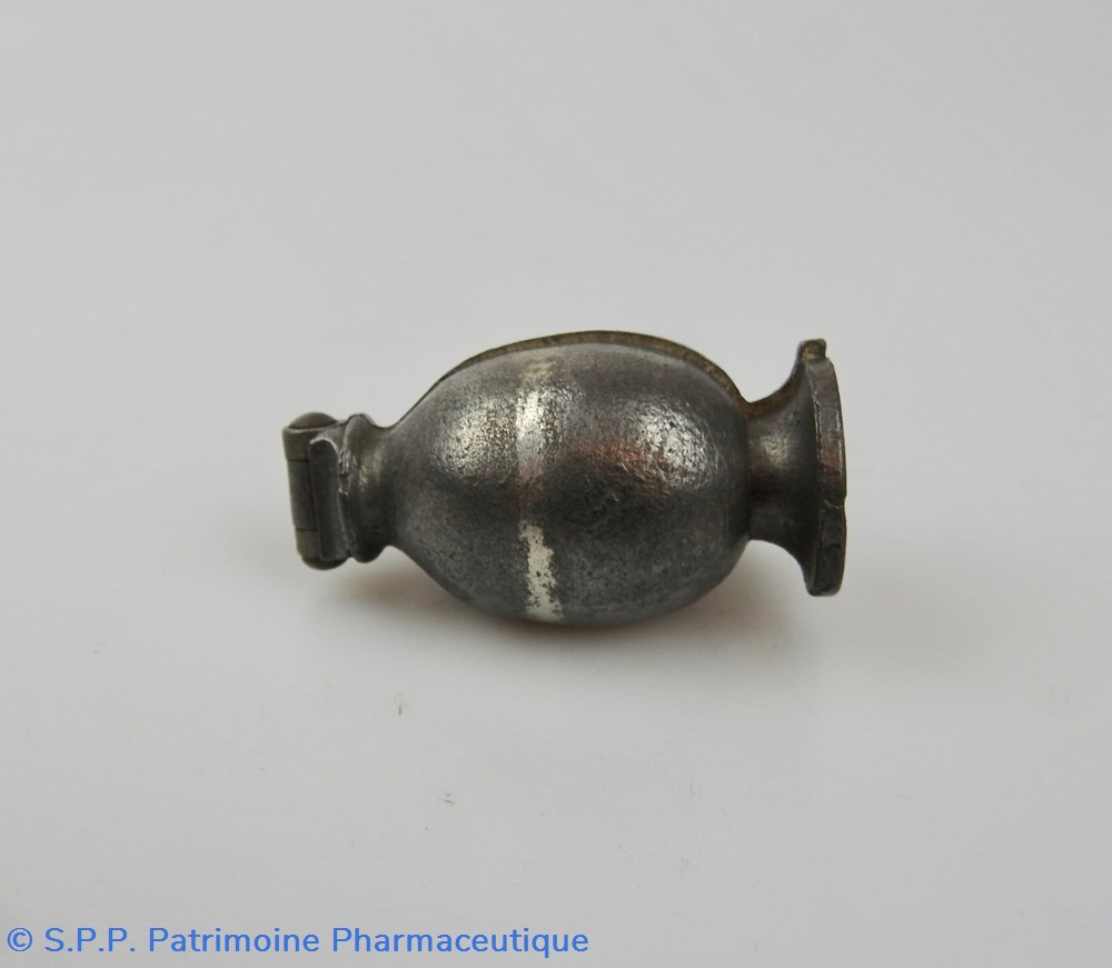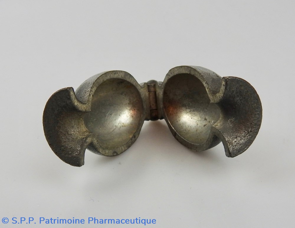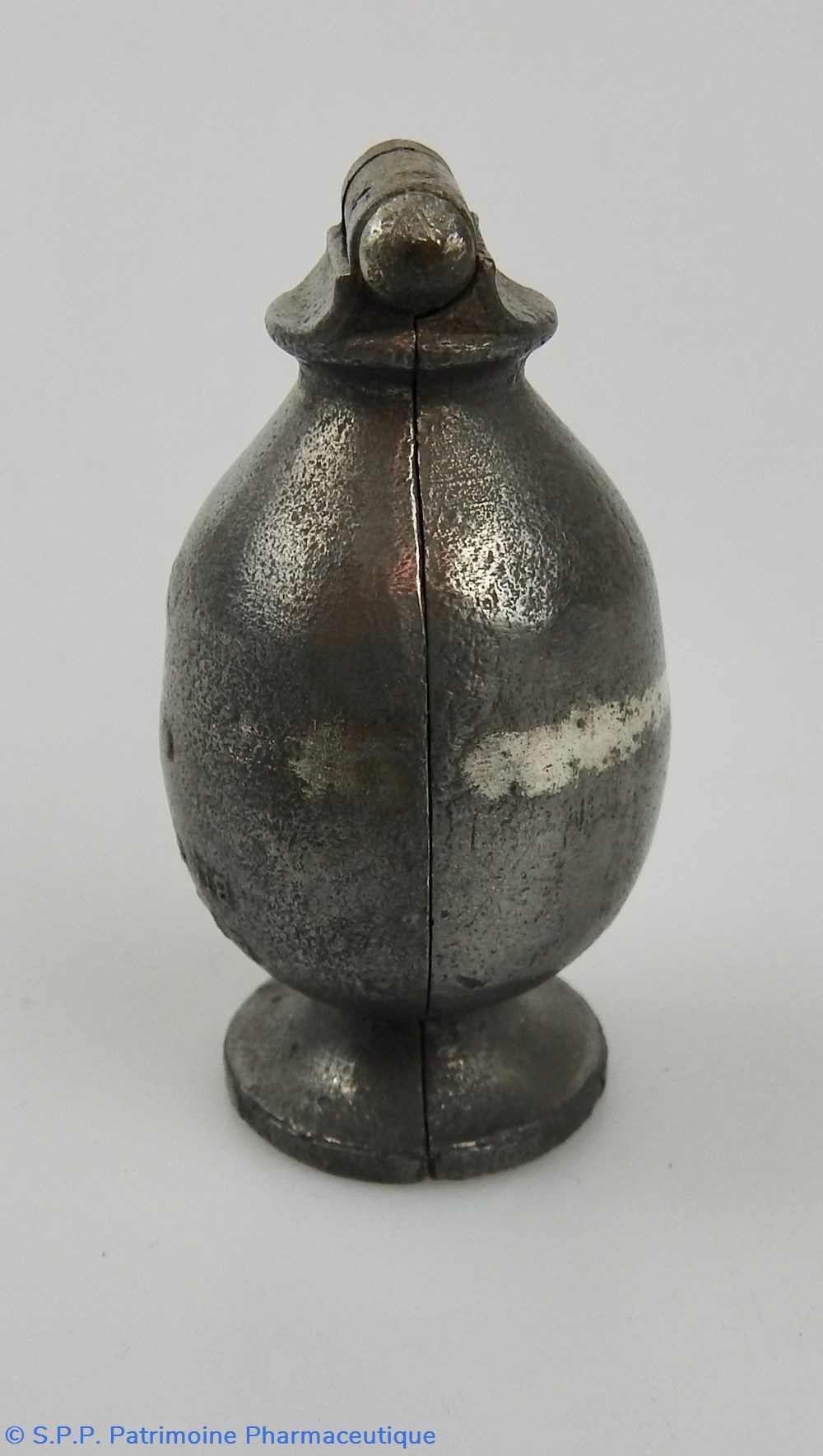 Petit moule en étain forme oeuf sur pied avec articulation au sommet ( charnière )