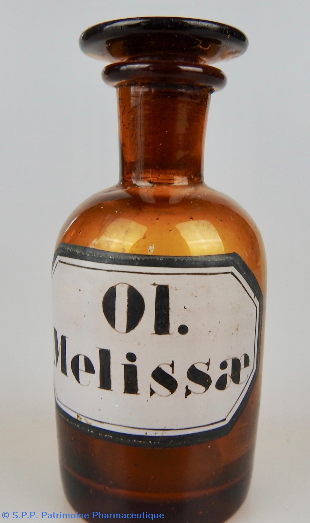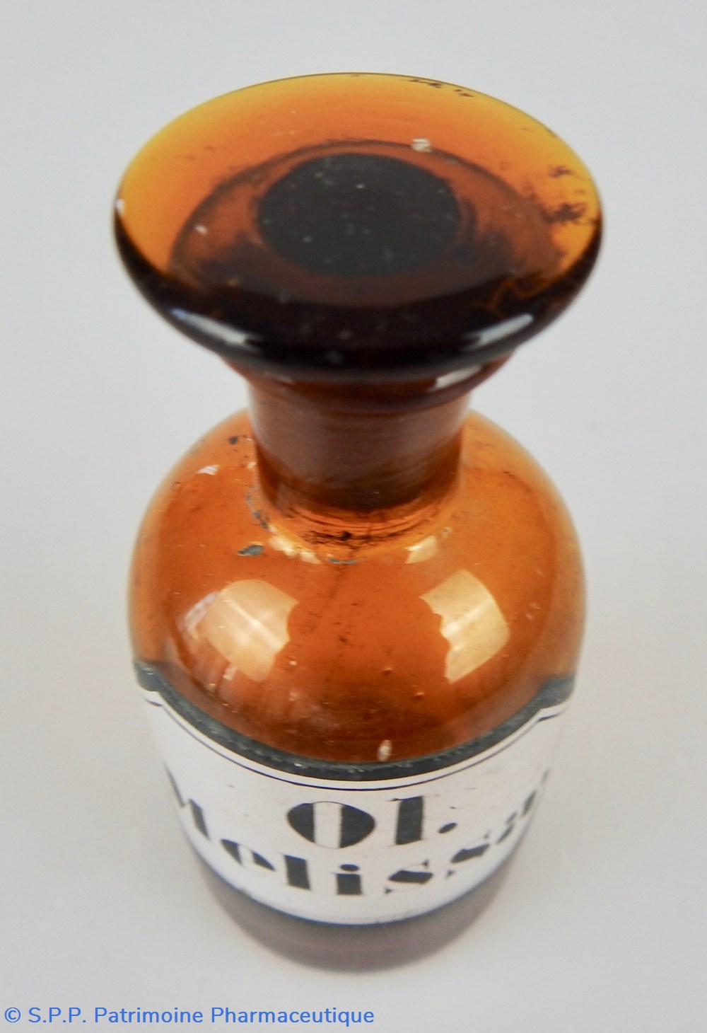 Flacon vide en verre ambré avec bouchon verre ambré.