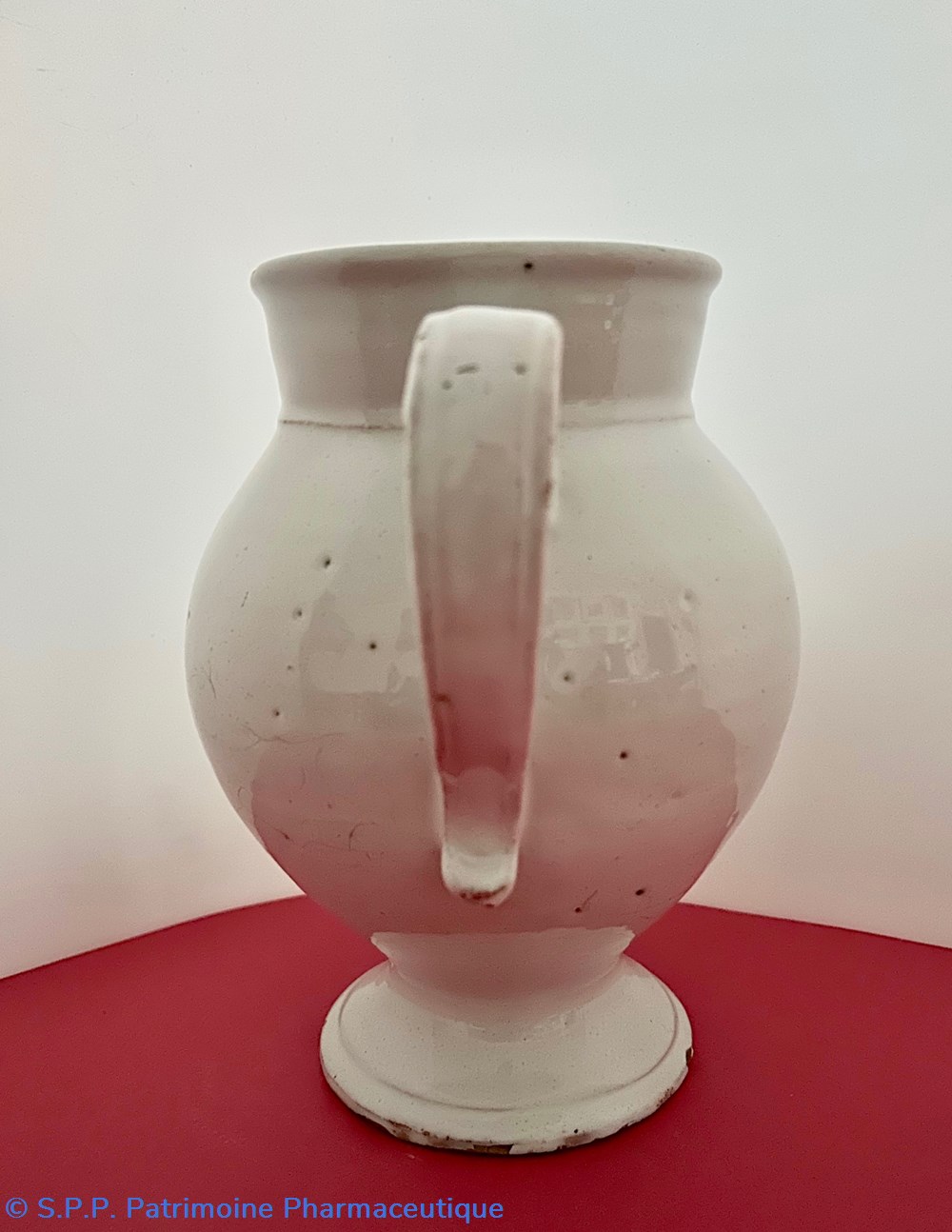 XVIIIème siècle. Hauteur 24 cm. Diamètre de l'ouverture supérieure : 8,5 cm. Fêle restauré au col au niveau de l'anse, menus éclats