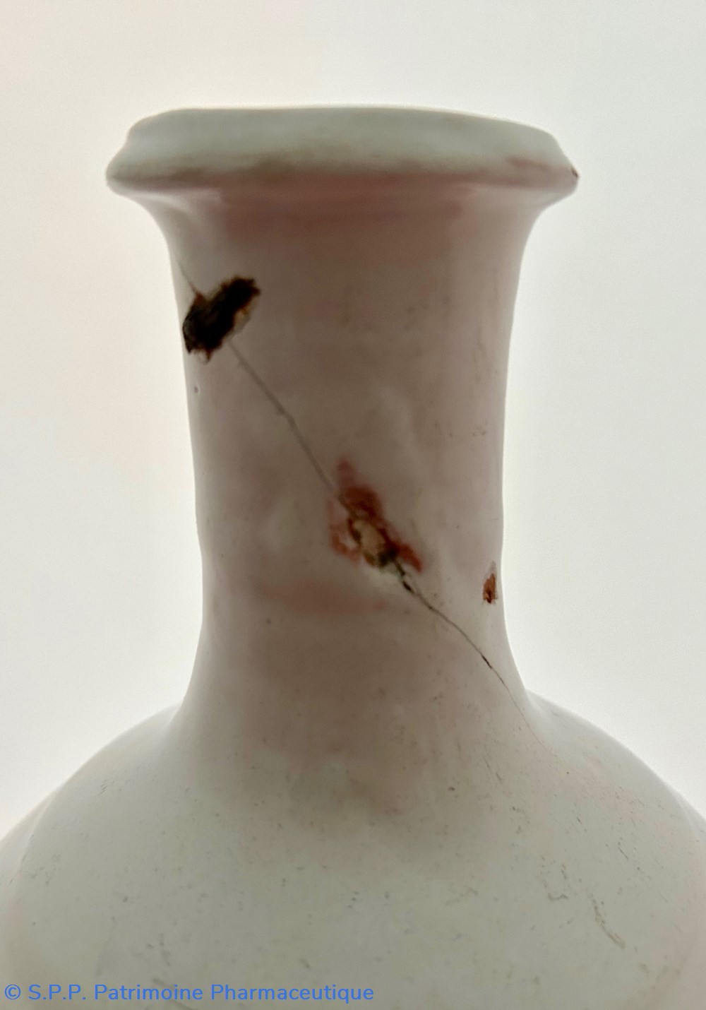 XVIIIème siècle. Hauteur : 25 cm. Diamètre de l'orifice : 5 cm. Restauration avec une agrafe au col.