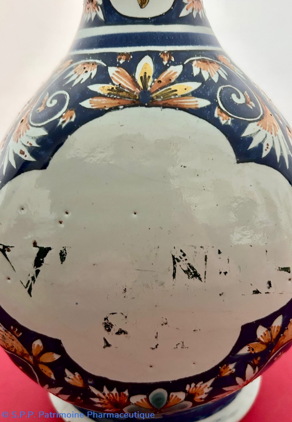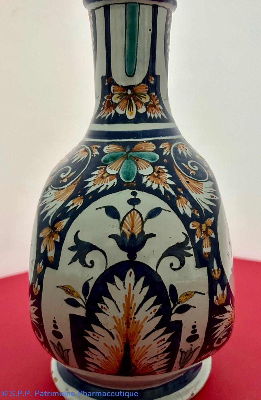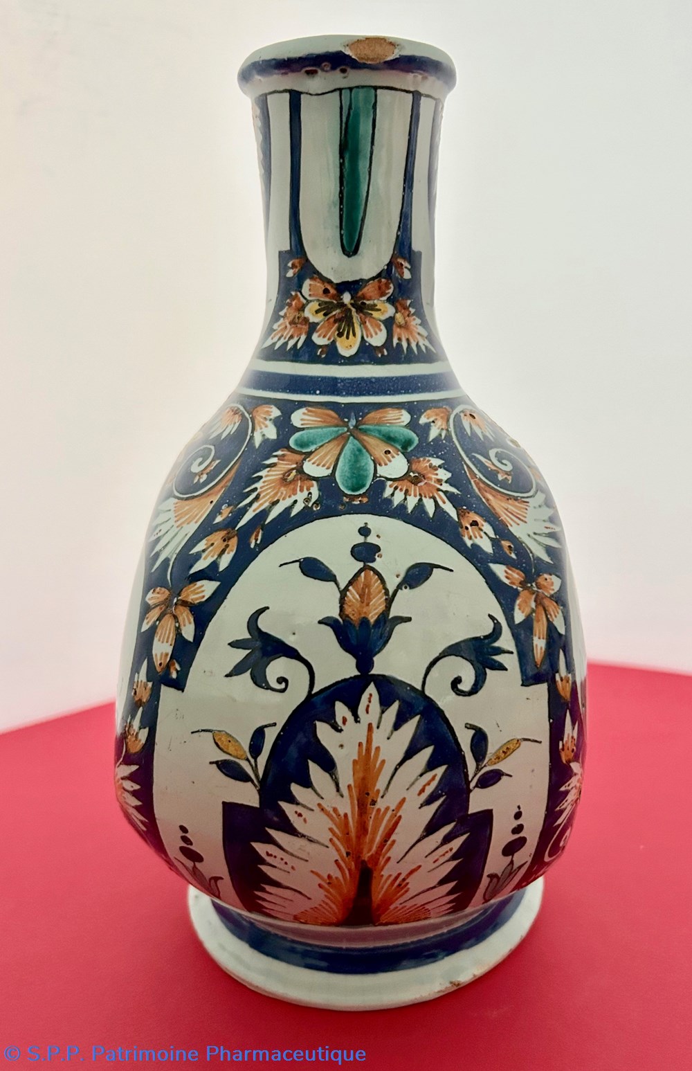 Des pièces similaires appartiennent aux collections du Musée National de la céramique à Sèvres, reproduites dans l'ouvrage d'Henri-Pierre Fourest et de Pierre-Nicolas Sainte-Fare-Garnot " Les pots de pharmacie, Rouen et la Normandie", page 109. Une paire de bouteilles identiques figurait à la vente d'ARTCURIAL du 4 juin 2002, lot 199