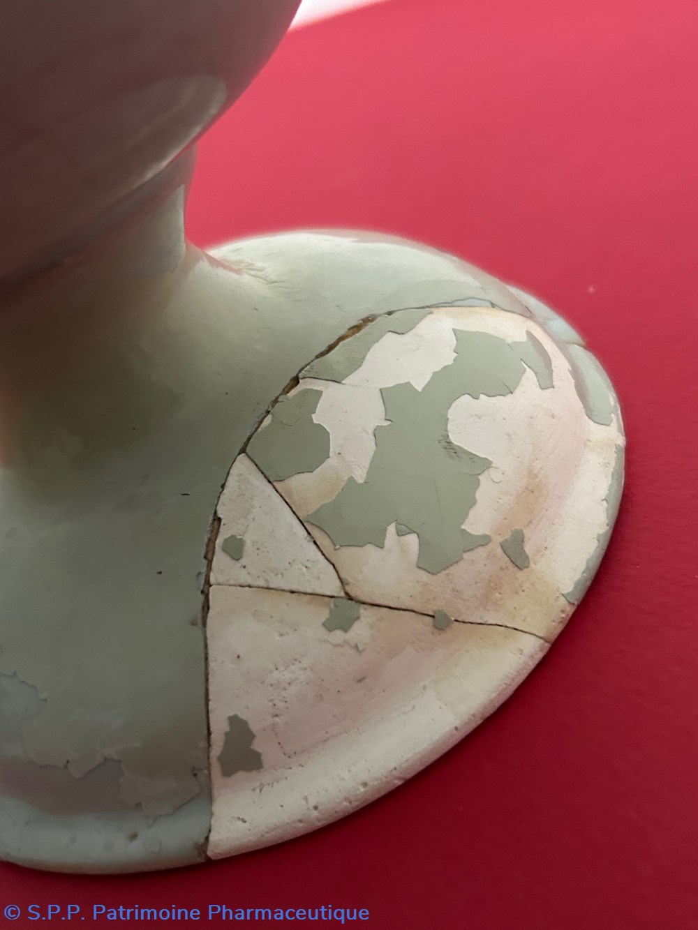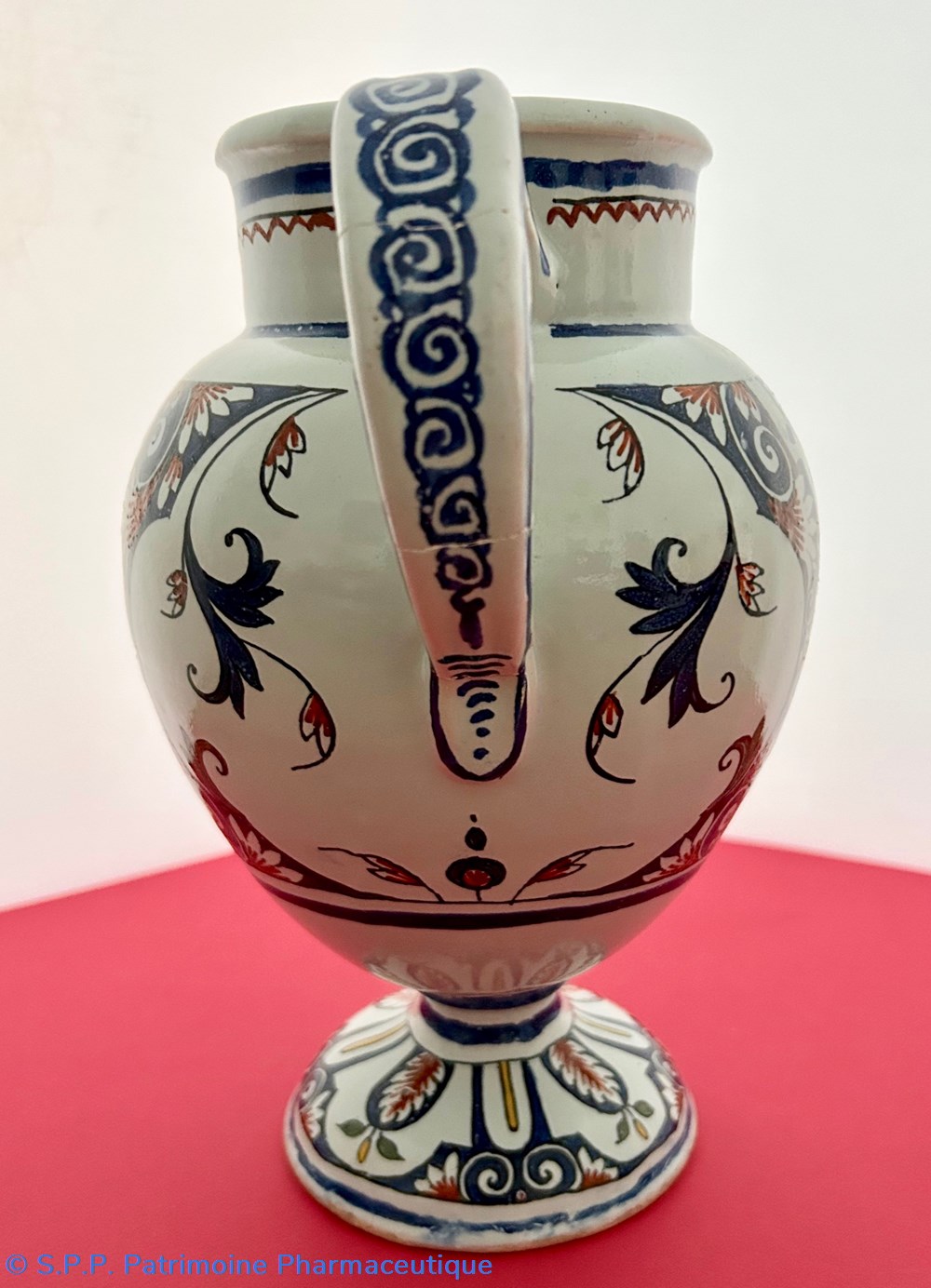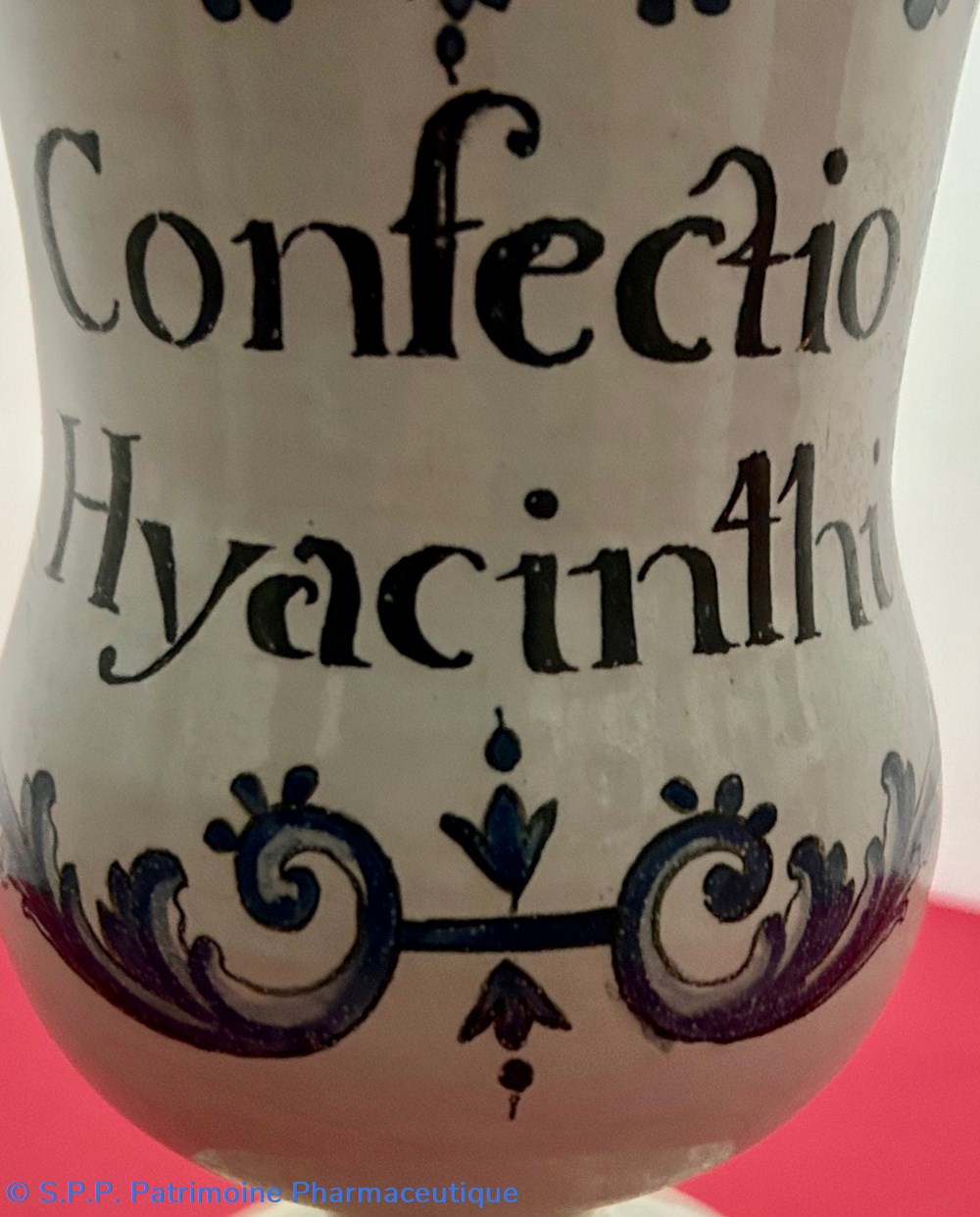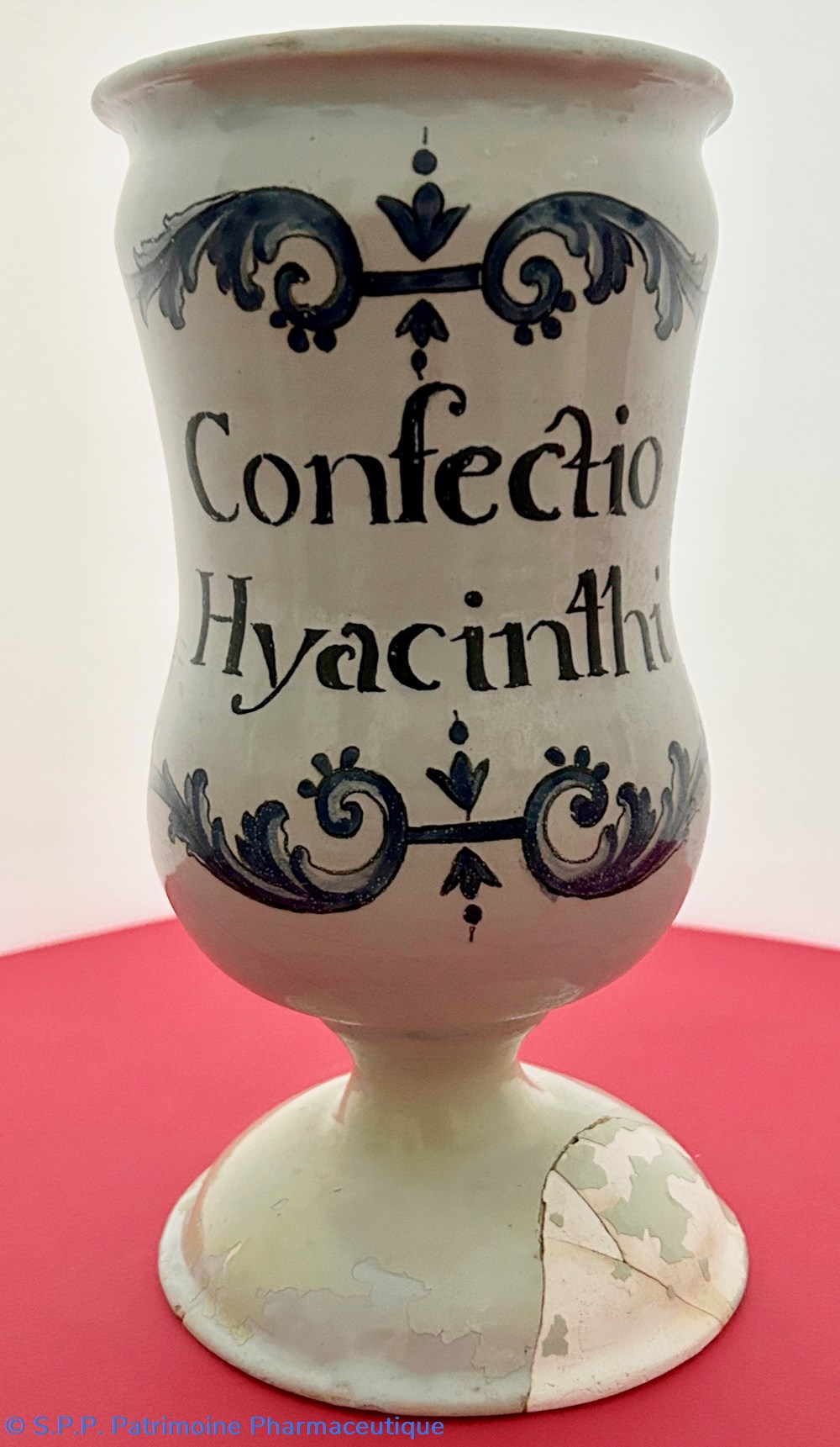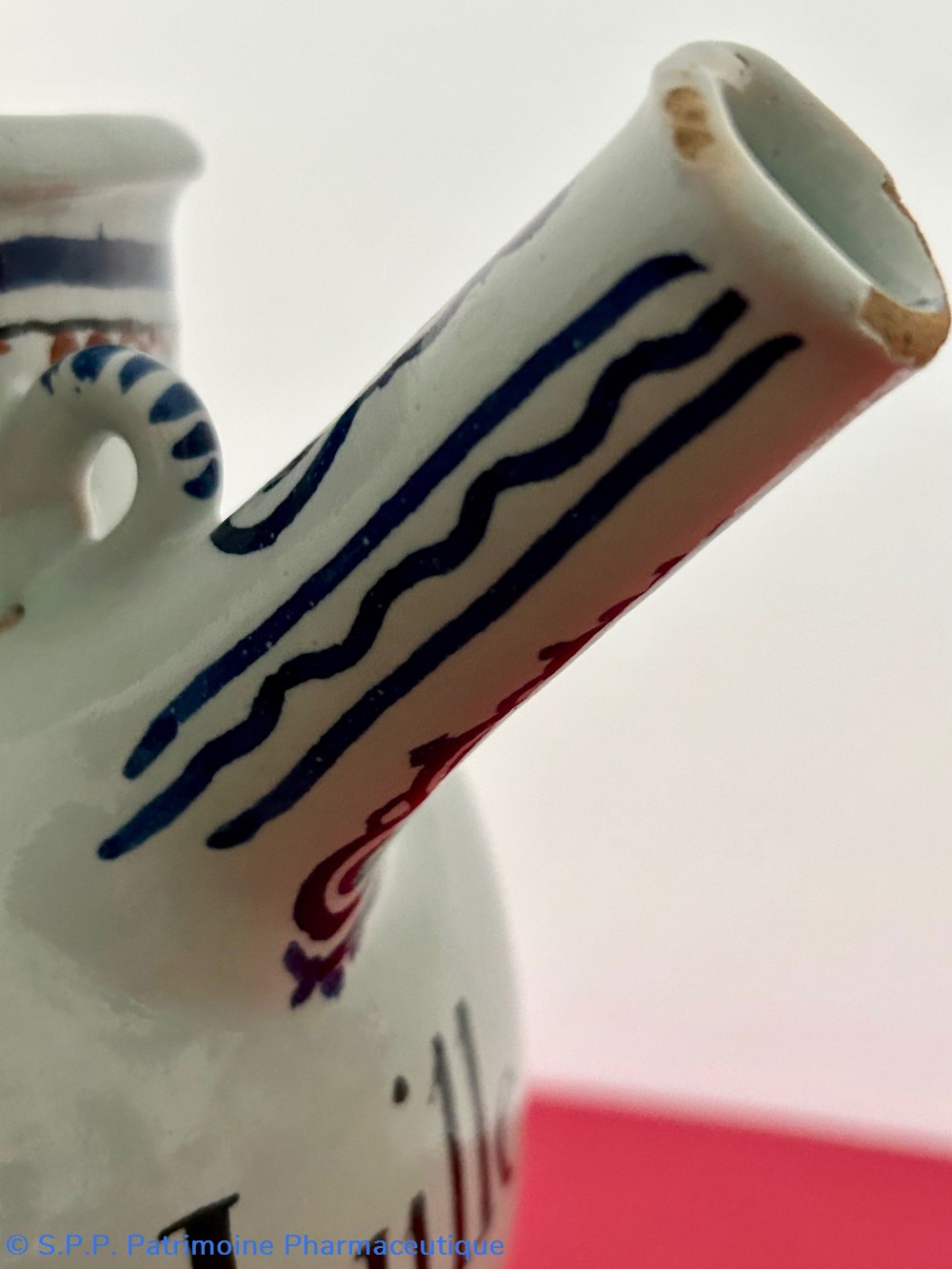 Des pièces similaires appartiennent aux collections du Musée National de la céramique de Sèvres, reproduites dans l'ouvrage d'Henri Pierre Fourest et Pierre Nicolas Sainte-Fare-Garnot "Les pots de pharmacie, Rouen et la Normandie", page 109.