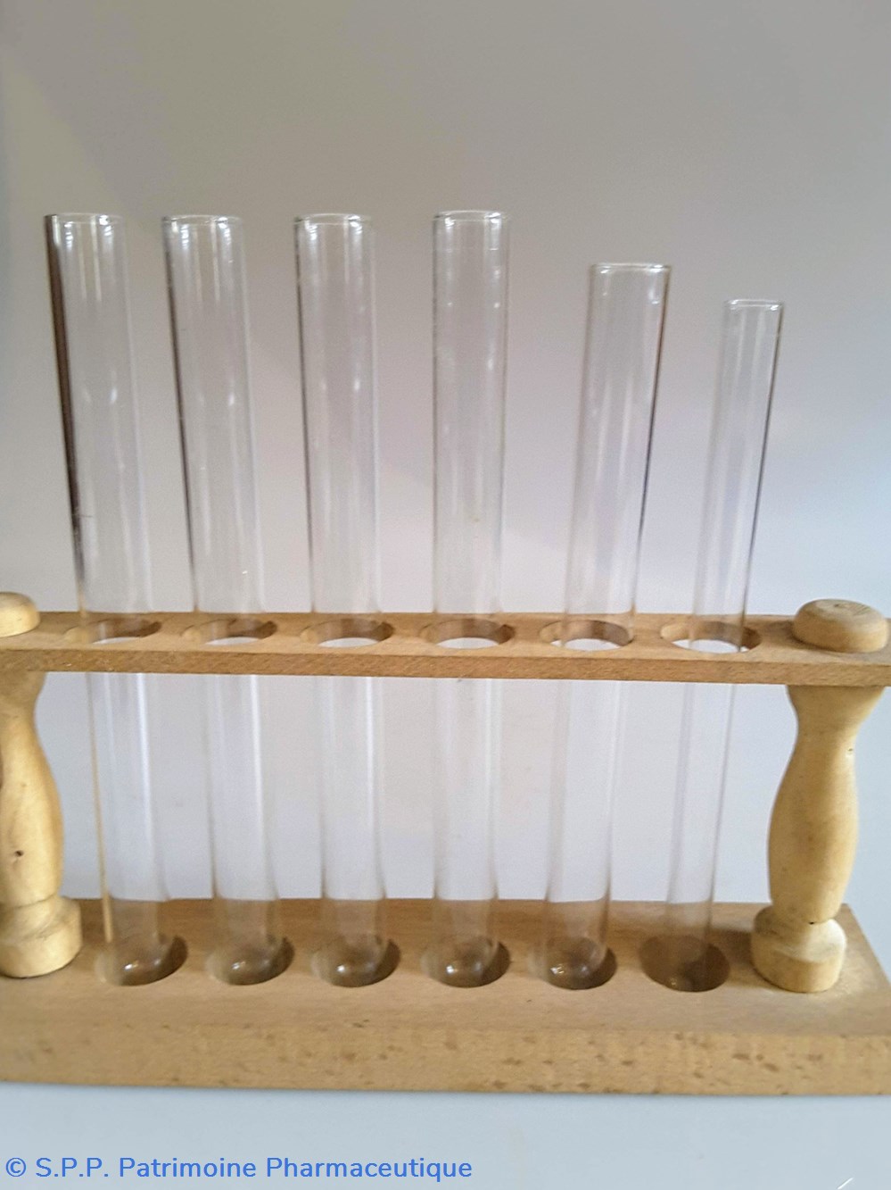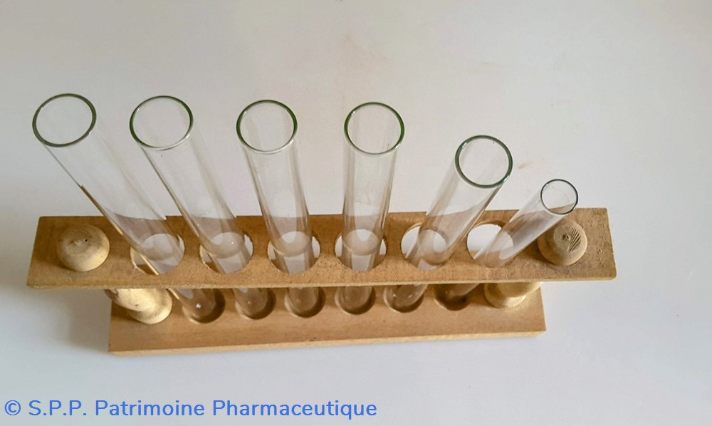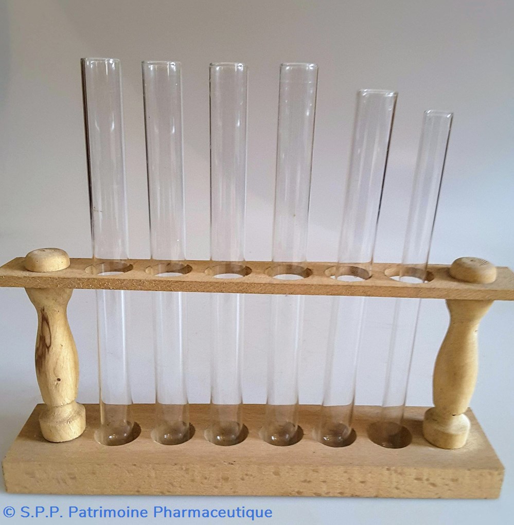 Portoir de tubes à essai garni de 6 tubes en verre