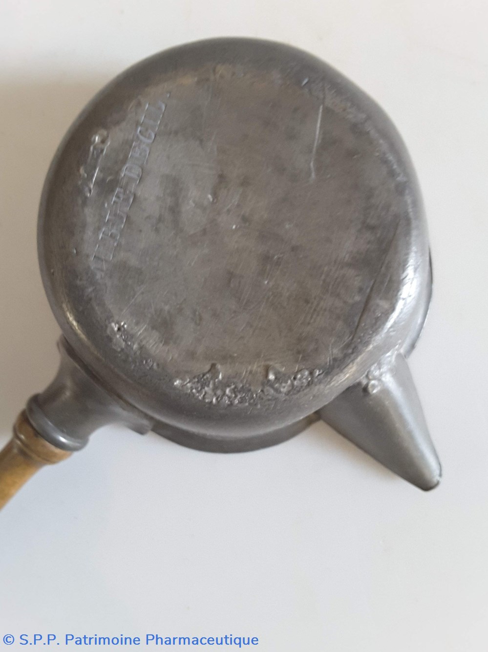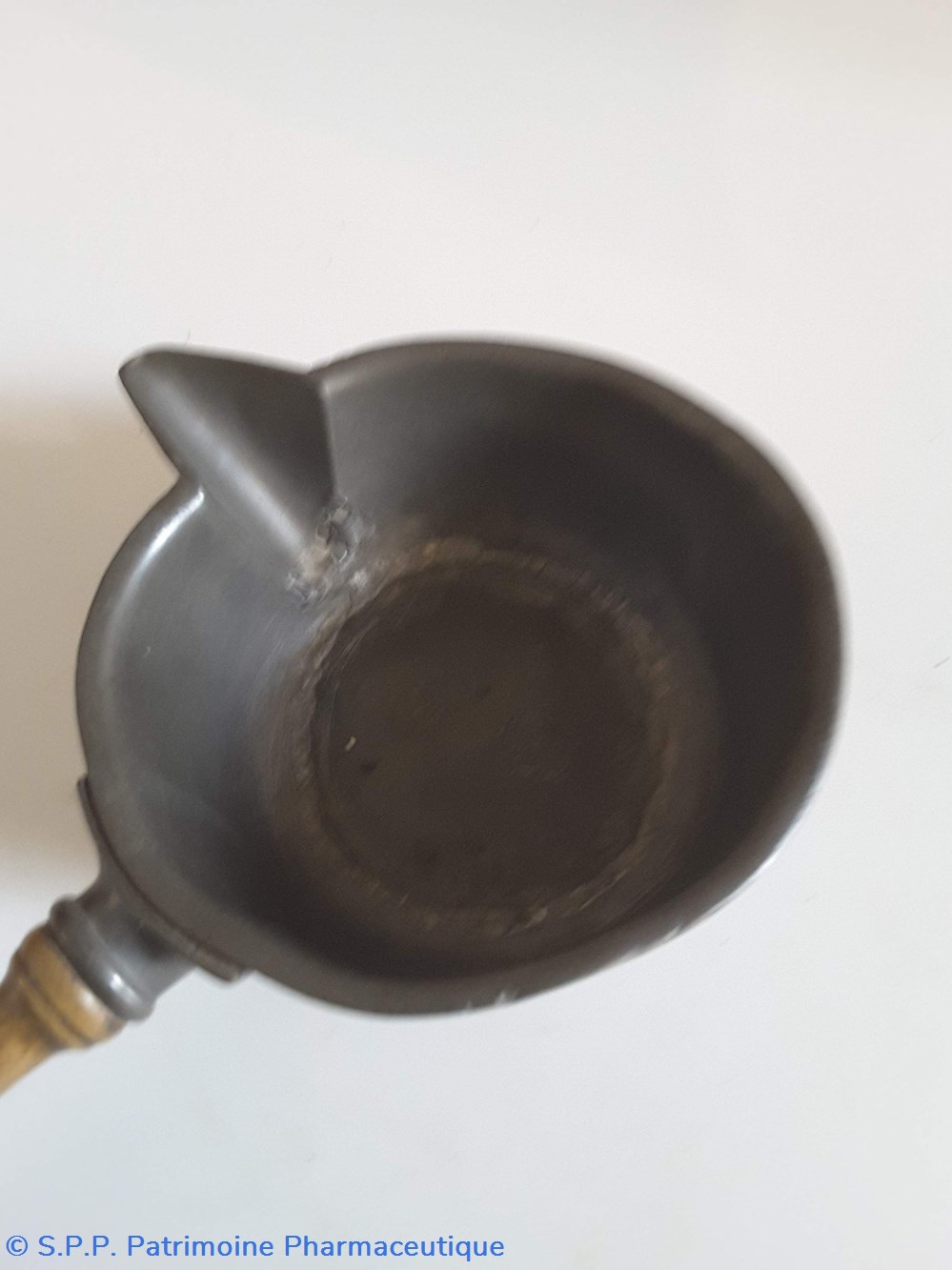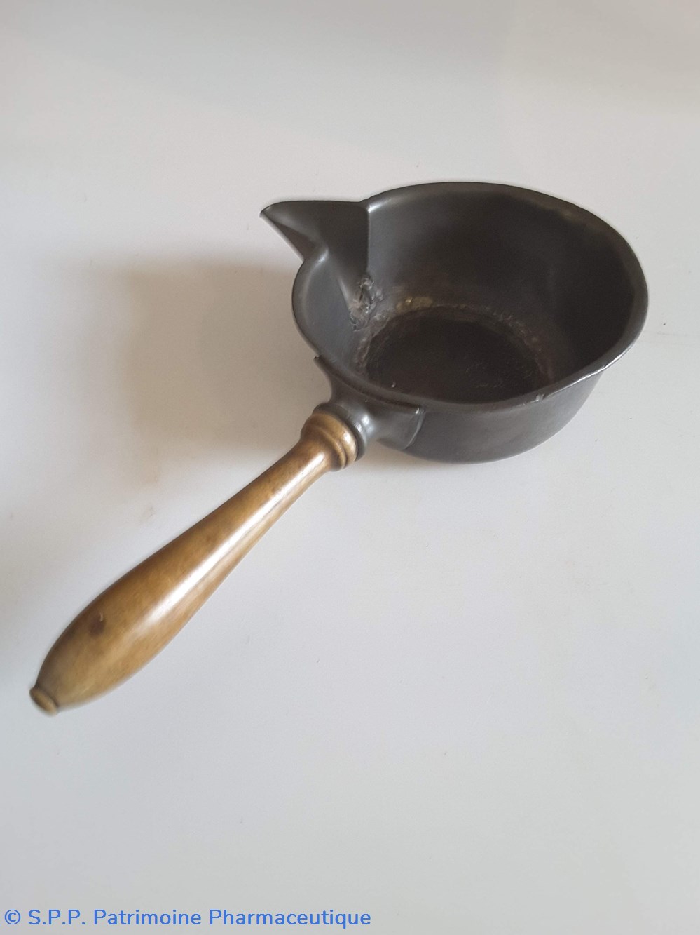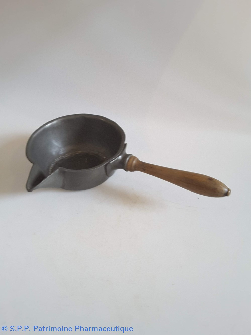 verseuse en étain Manche en bois