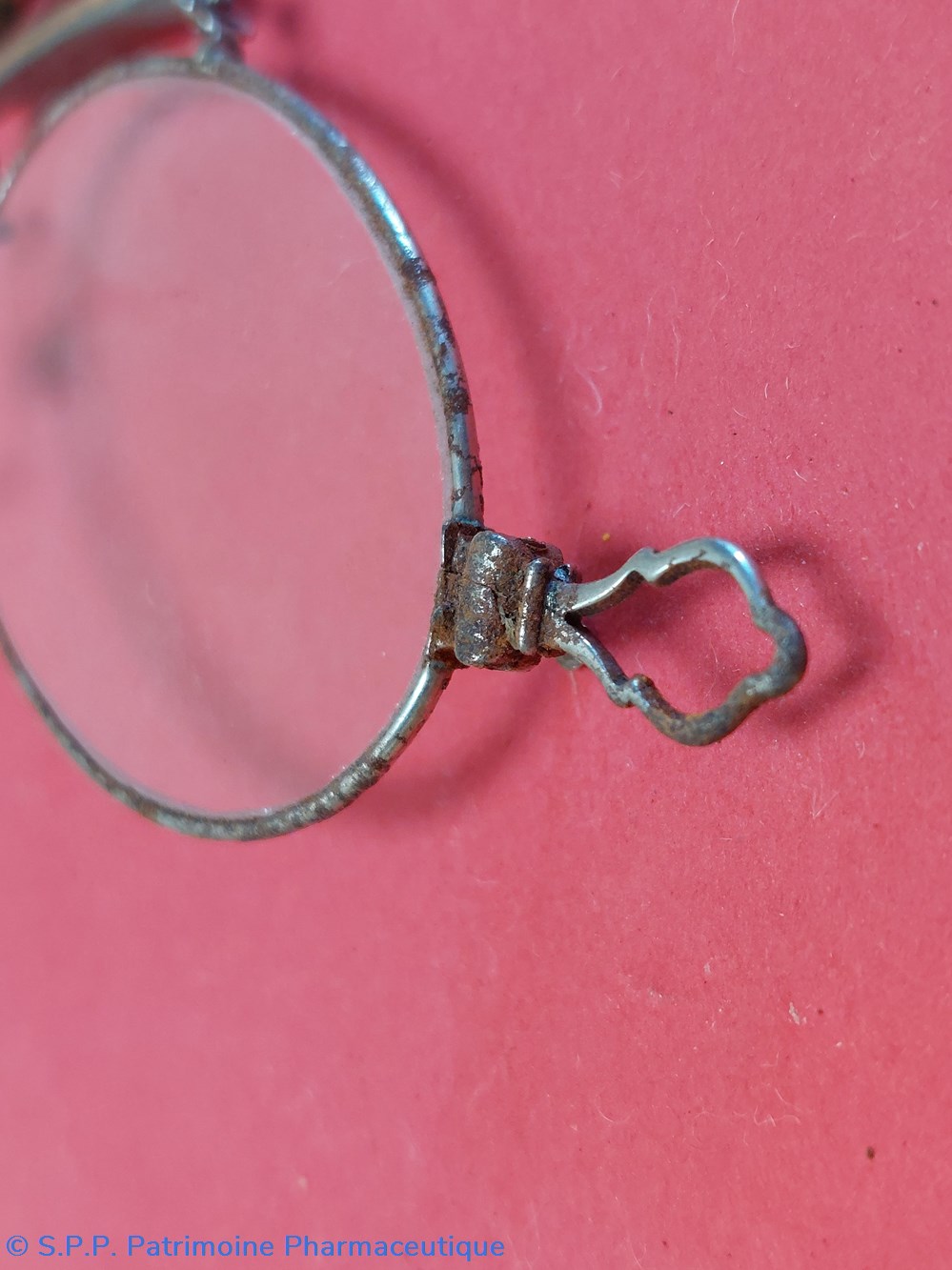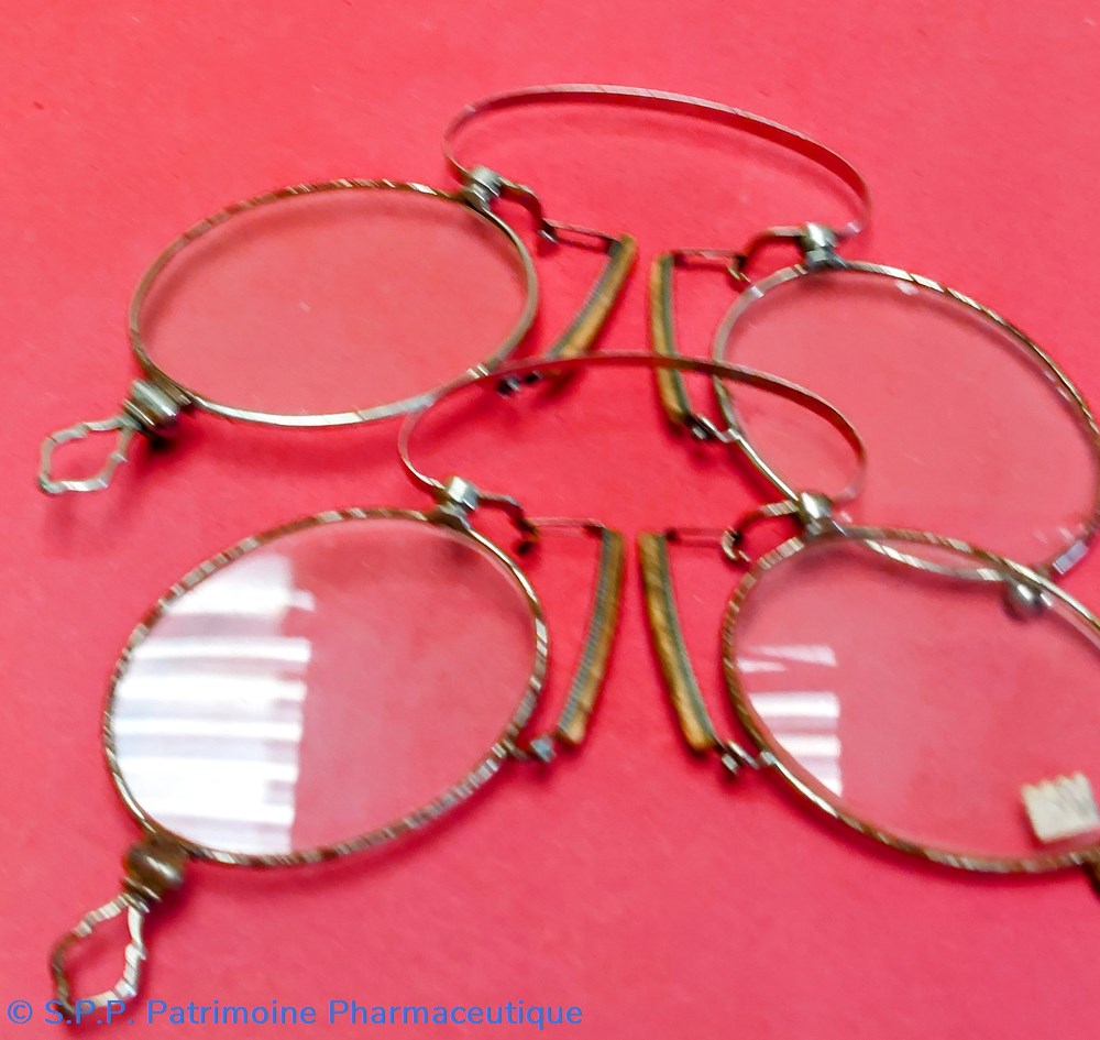Un œillet en partie basse permettait de retenir le pince - nez à l'aide d'une gourmette ou chaînette reliée à son gilet.