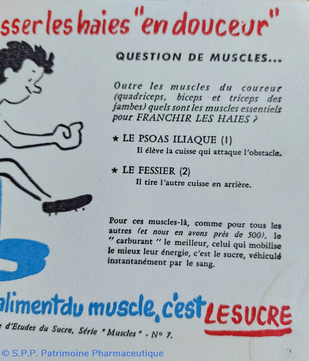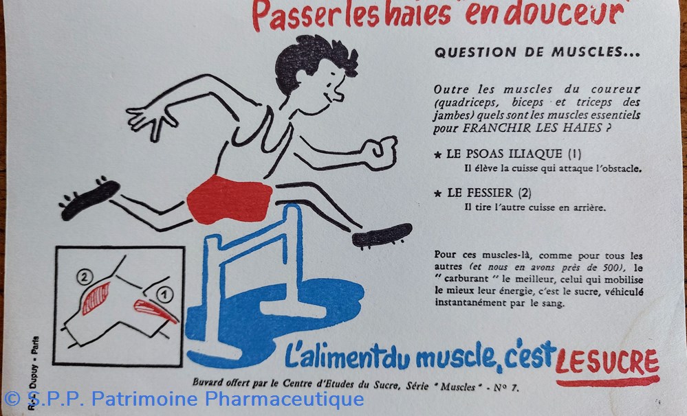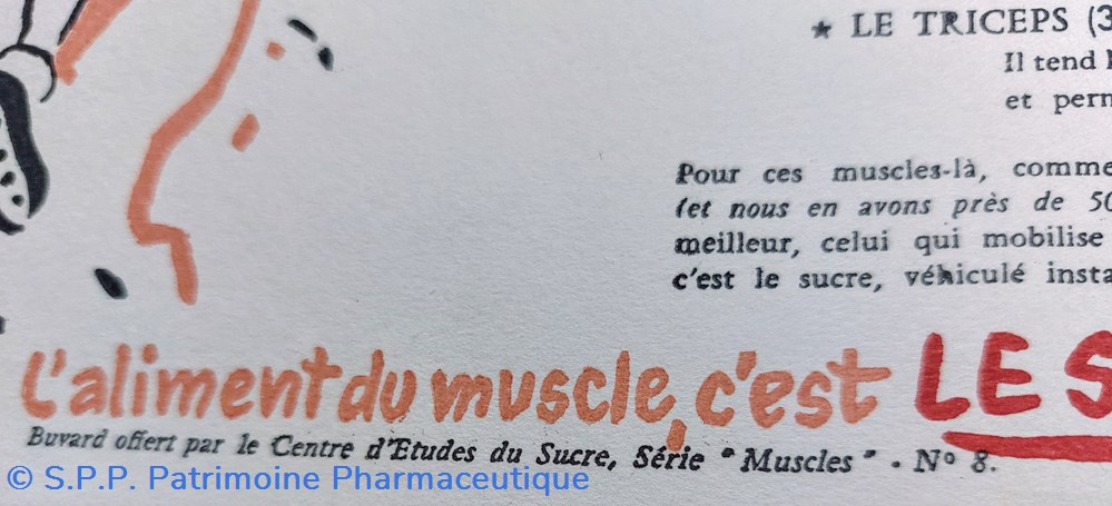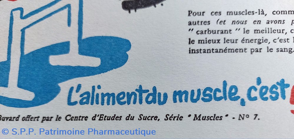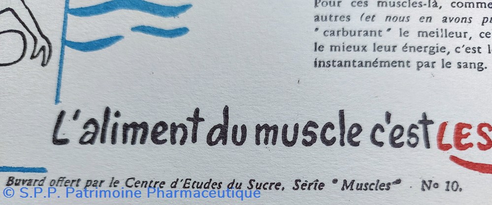 Série de buvards offerts par le Centre d'Etudes du Sucre. Série " MUSCLES"
