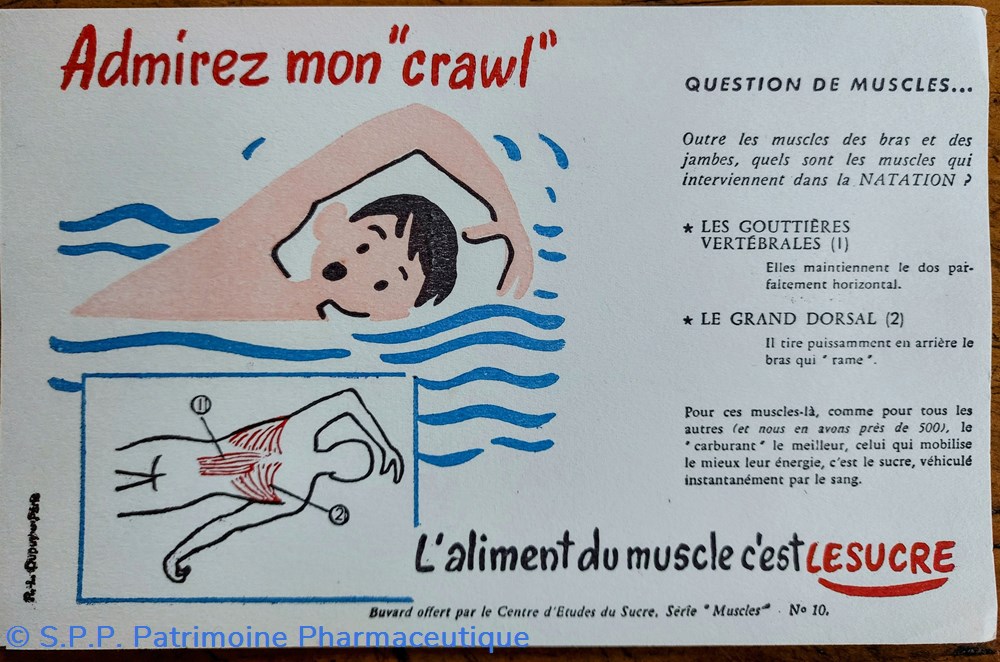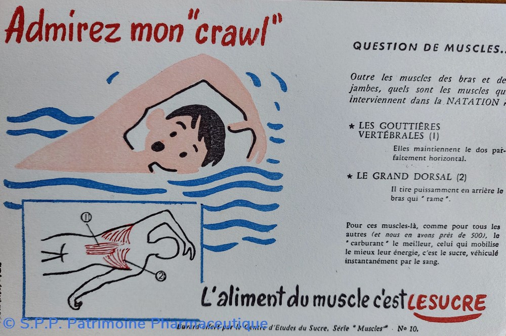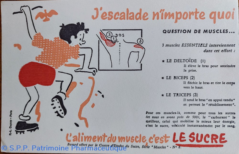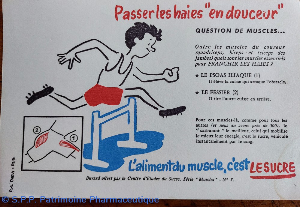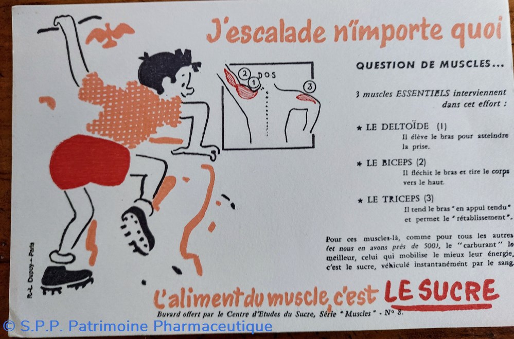 Série de buvards offerts par le Centre d'Etudes du Sucre. Série " MUSCLES"