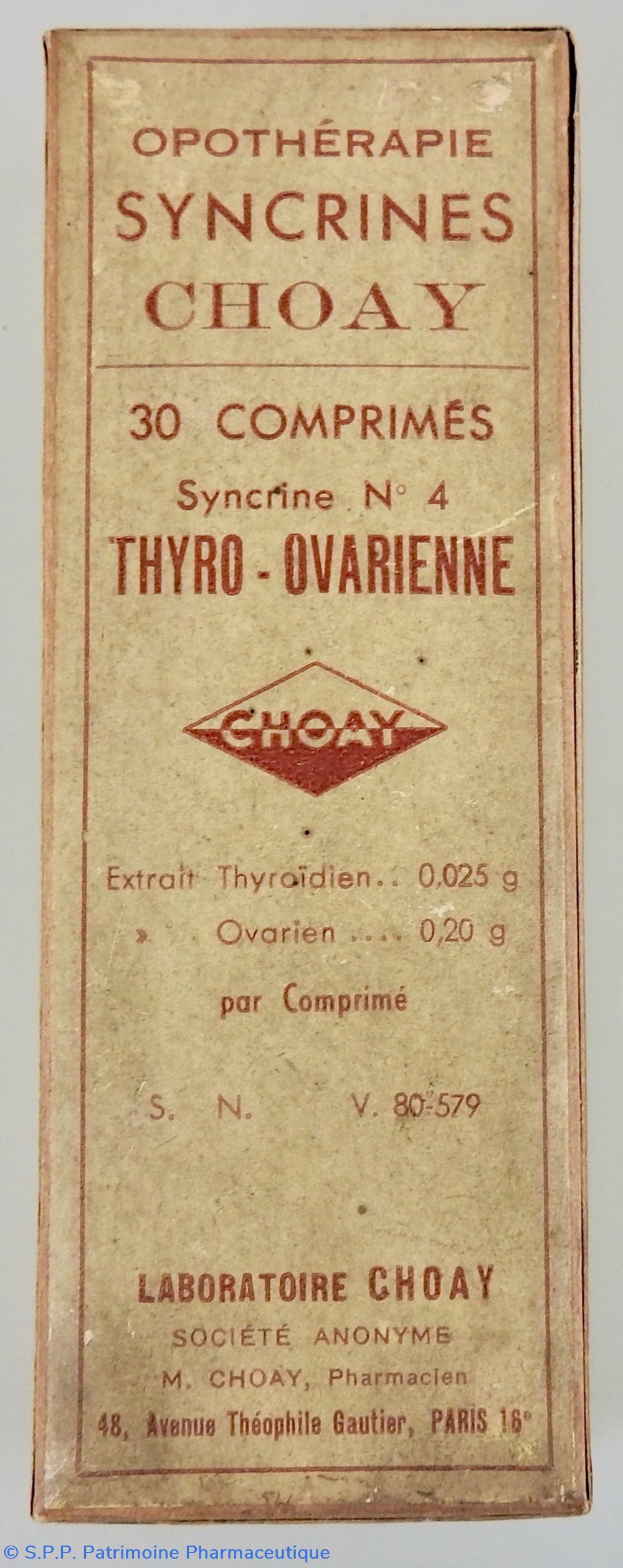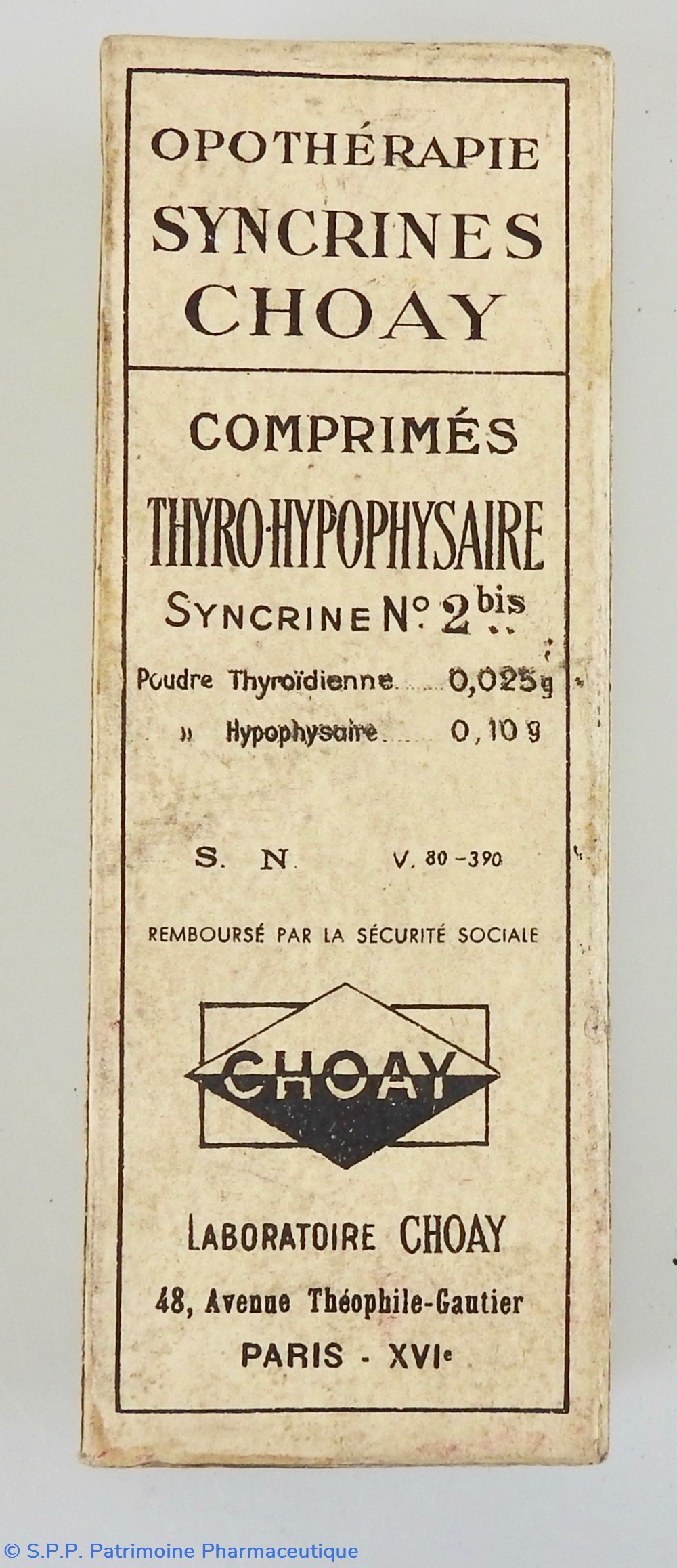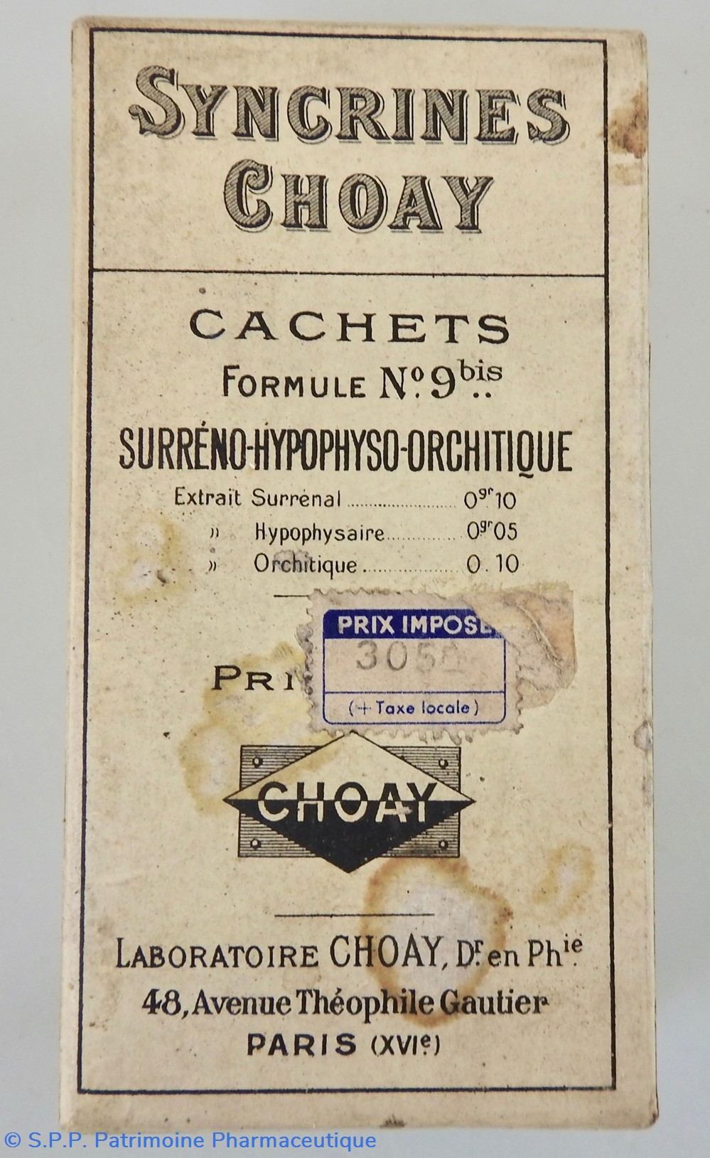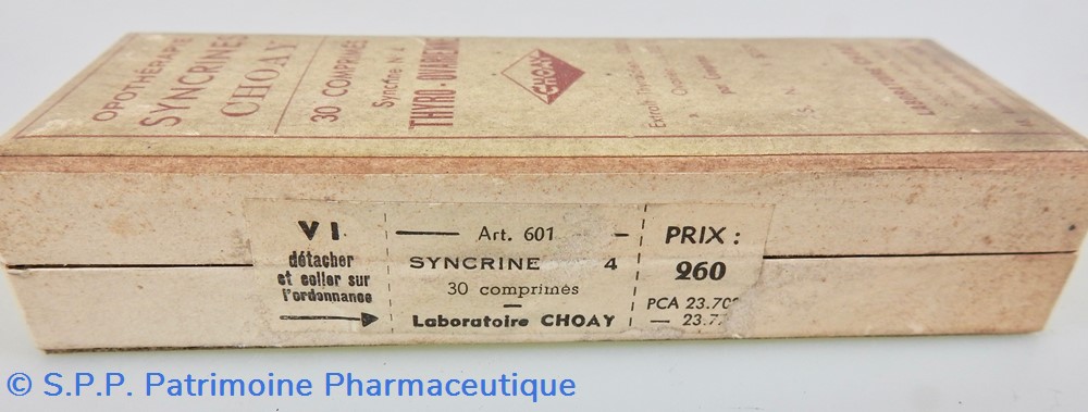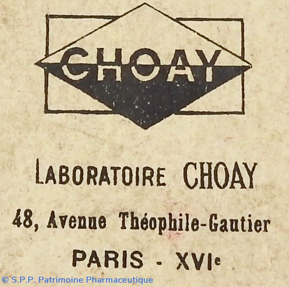 Provenance : Laboratoires Choay 48 avenue Théophile Gautier Paris XVIème