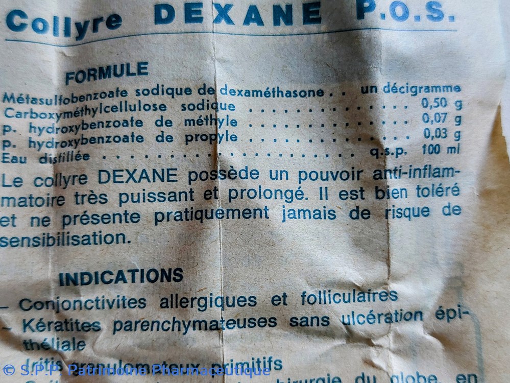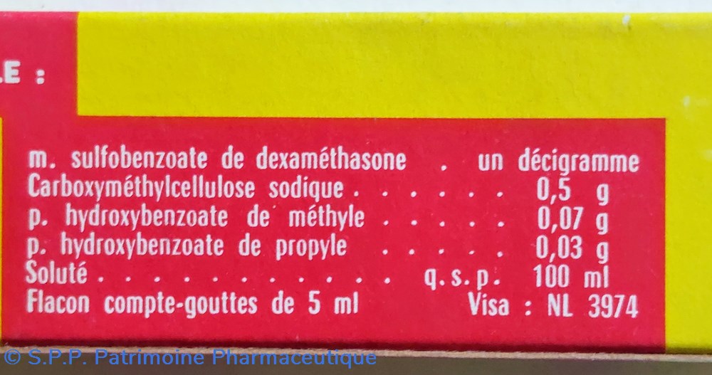 FORMULE m. Sulfo benzoate de dexamethasone. Carboxymethylcellulose. P. hydro benzoate de methyle. Hydro benzoate de propyle.