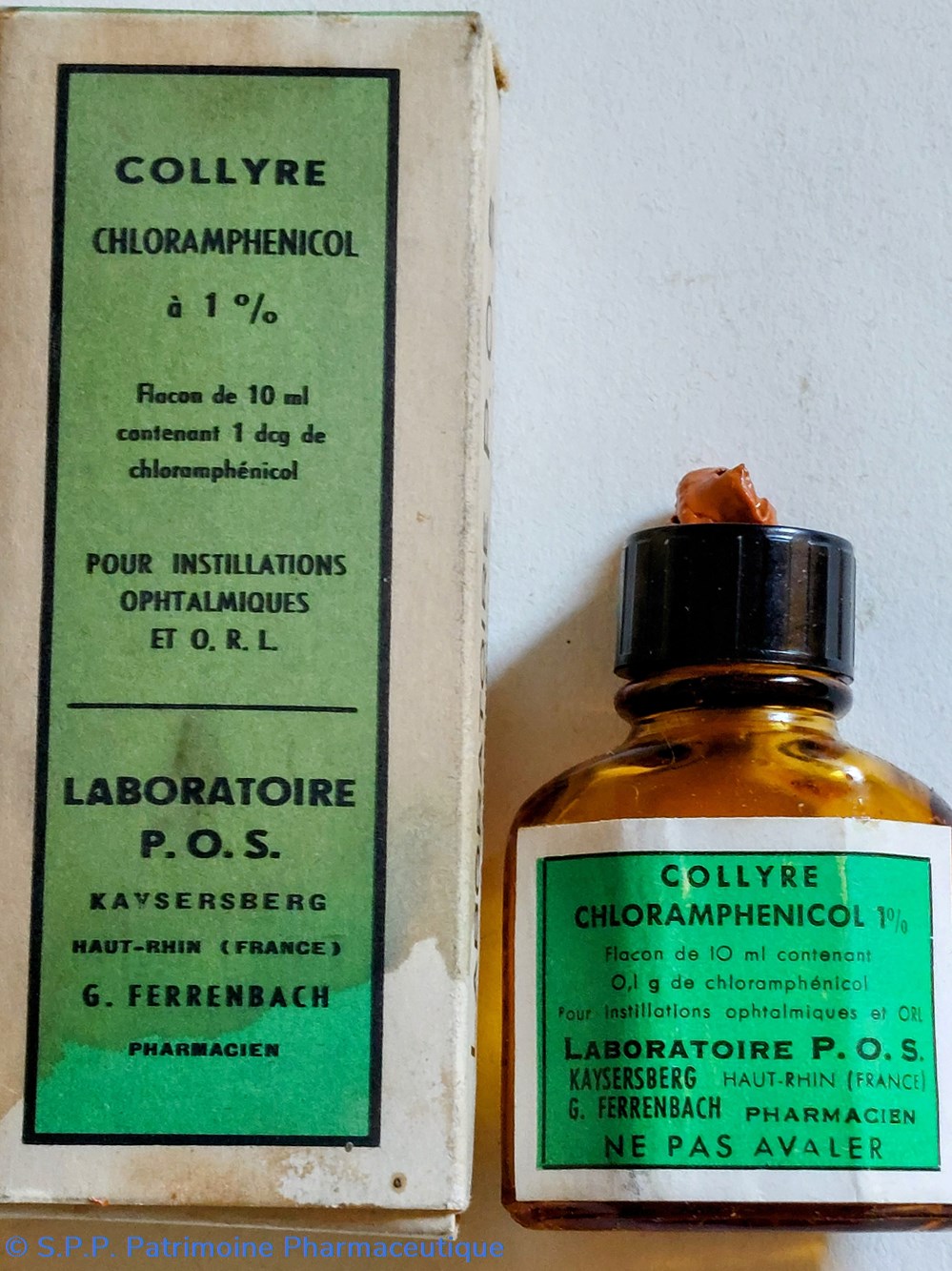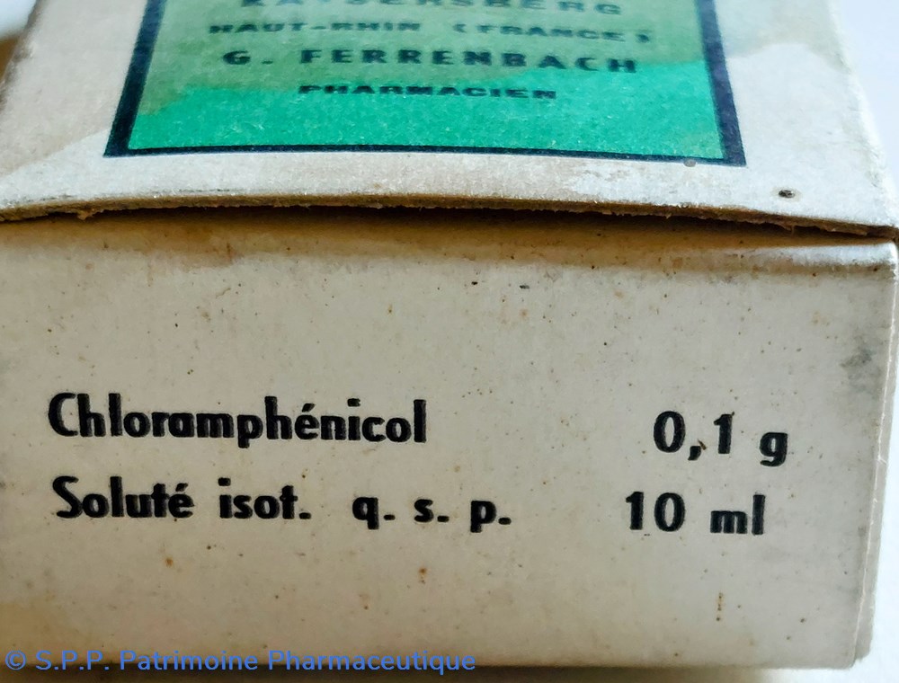 Flacon en verre ambré ayant contenu 10 ml de CHLORAMPHÉNICOL à 1%