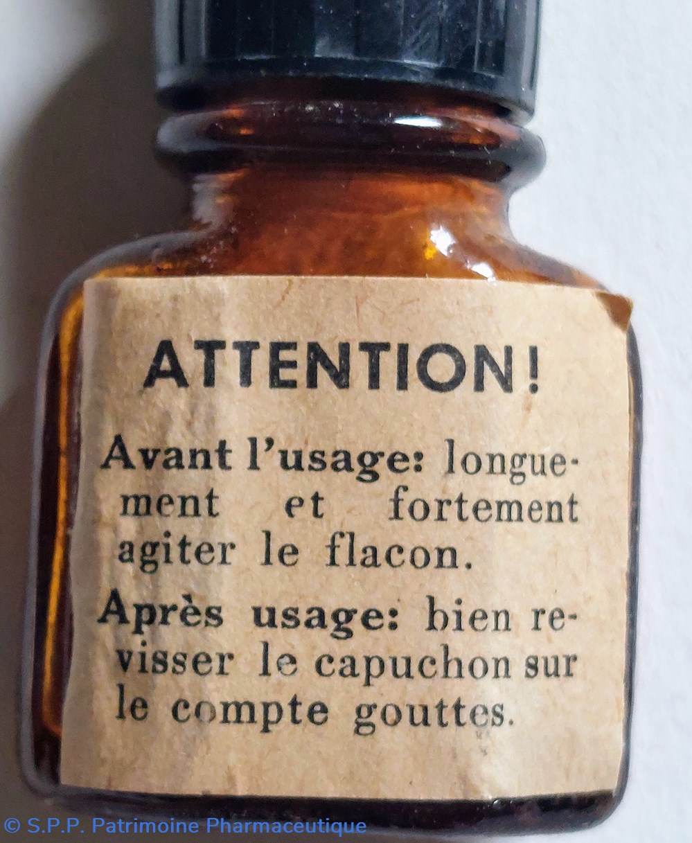 Flacon avec compte gouttes (caoutchouc desséché).