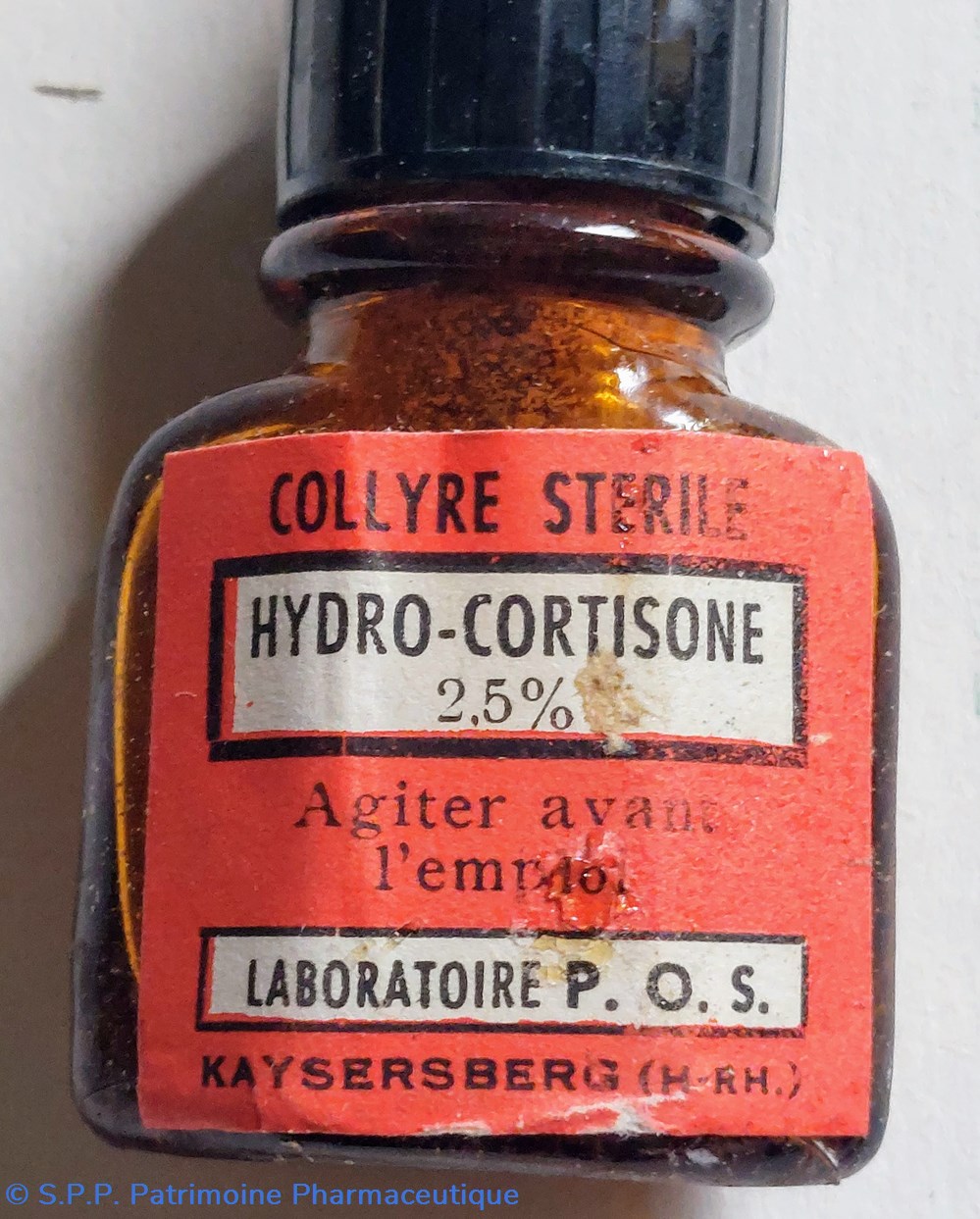 Flacon en verre ambré ayant contenu du COLLYRE STÉRILE HYDRO - CORTISONE 2.5 %
