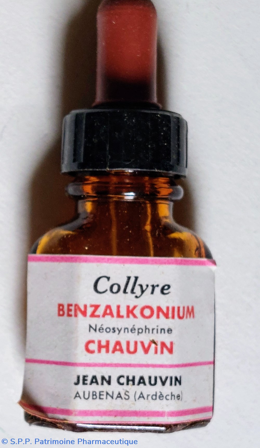 Flacon vide en verre ambré de collyre de BENZALKONIUM à la Neosynephrine
