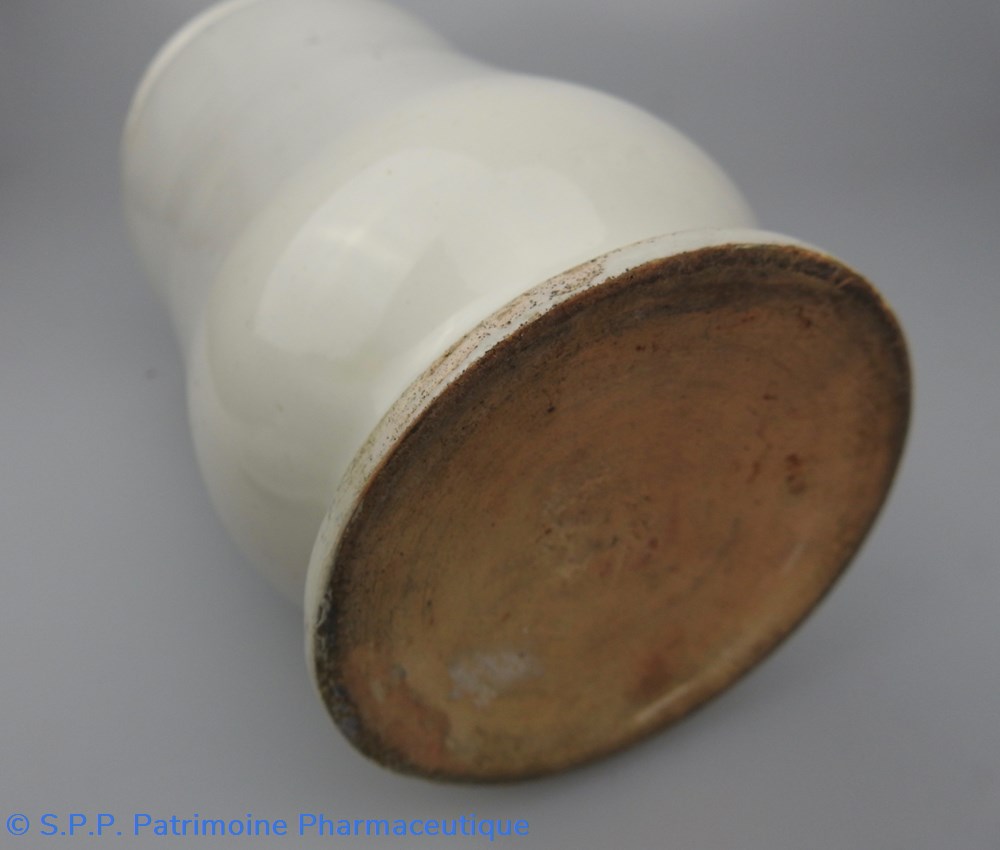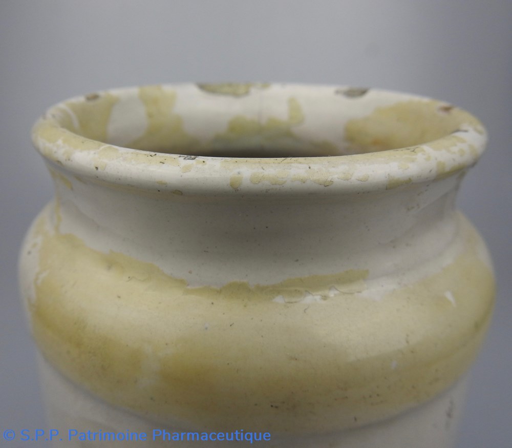 Ce pot était destiné à contenir une conserve d'écorces d'orange amère.. Les conserves sont des préparations de matières végétales unies à du sucre et réduites avec lui en une masse uniforme, tantôt de consistance un peu molle et tantôt sèche et cassante.