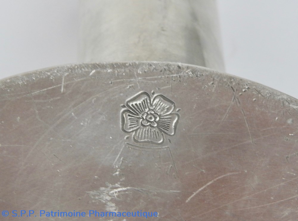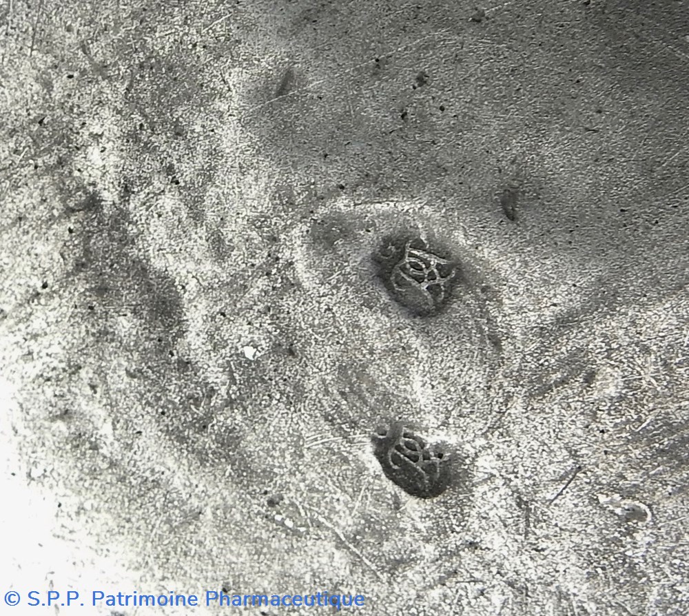 Poinçon de contrôle au P couronné (utilisé de 1747 à 1750 durant la Charge de Georges Le Tellier). Poinçon de Raymond Guillaume ROUSSELET, reçu maître en 1735 : G/R.P./P. Ce Maître est très rare à constater selon l'expert Philippe Boucaud. Objet expertisé par J. Cl. Commenchal. Milieu du XVIIIème siècle.