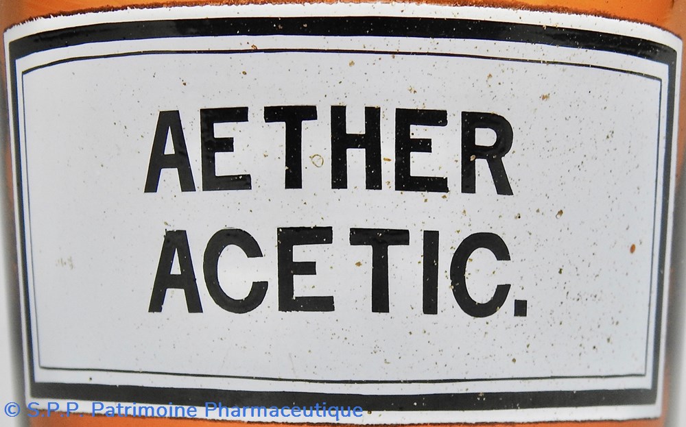 Flacon de pharmacie en verre ambré moyen modèle à étiquette blanche et noire