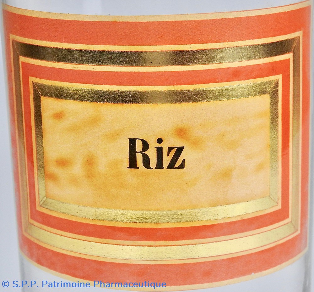 Le riz, Oryza sativa, est une grande plante herbacée annuelle, dont les nombreuses variétés sont cultivées dans les régions humides tropicales, subtropicales et tempérées chaudes (Chine, Inde, Indonésie). Le fruit ou riz est presque entièrement formé d'amidon, il est pauvre en lipides et en substances azotées. Il ne contient pas de gluten. C'est un aliment de base pour la moitié de la population mondiale. L'amidon de riz, inscrit à la pharmacopée européenne ( monographie 04/2015, 0349), est utilisé comme excipient.